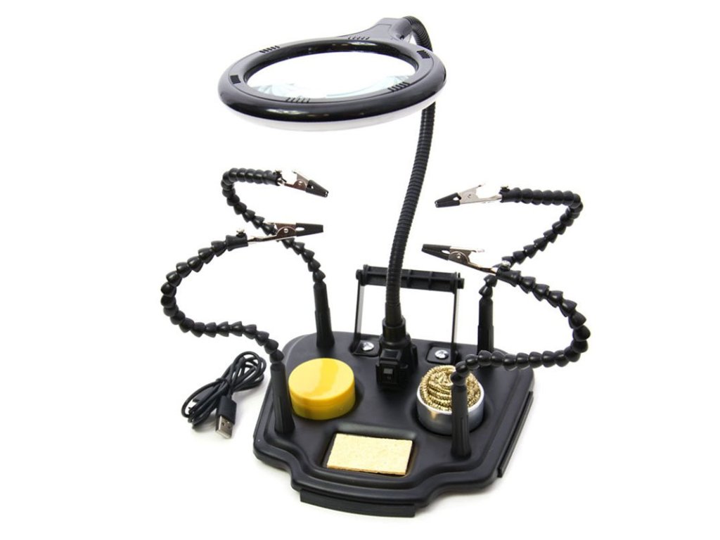 Držiak na spájkovanie, "tretia ruka", s lupou a LED osvetlením - Genborx U-ZD-11M-3