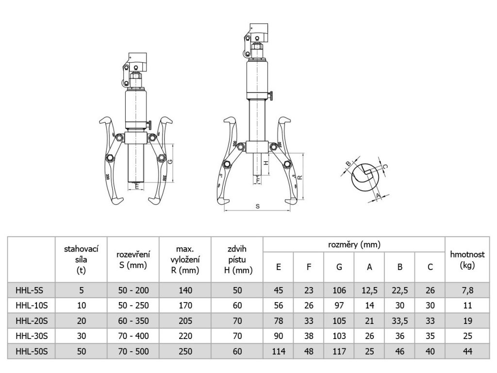 Dvoj- a trojramenný hydraulický sťahovák 10t - HHL-10S