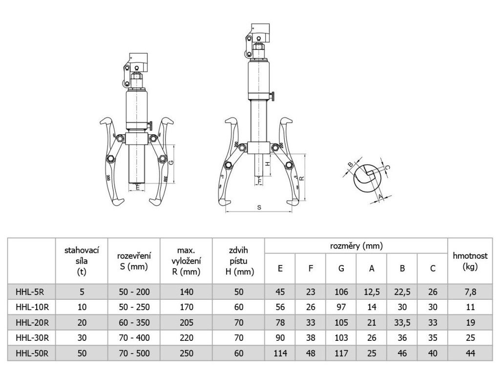 Dvoj- alebo trojramenný hydraulický sťahovák HHL-50R, sila 50 t
