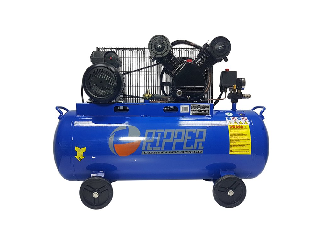 Dvojpiestový olejový kompresor so 100 l nádržou, príkonom 2,2 kW a maximálnym tlakom 8 barov.