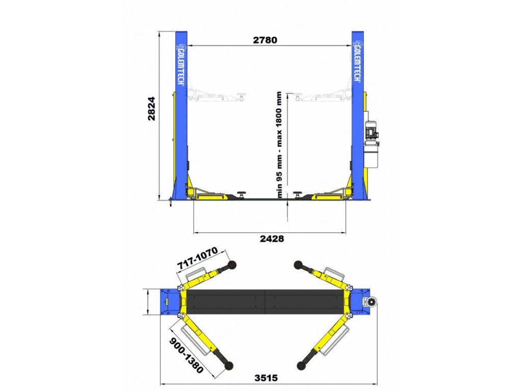 Zdvihák dvojstĺpový 3,5 t ECONOMIC, manuálna zámky, spodná prepojenie - Golemtech