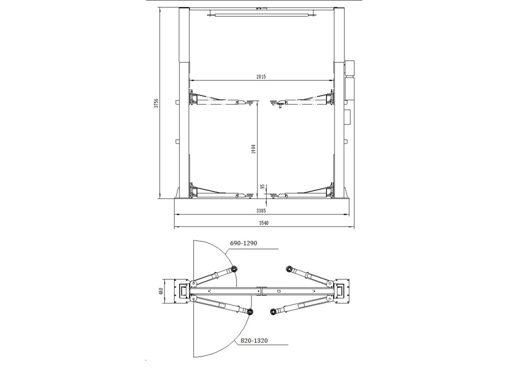 Dvojstĺpový zdvíhač s automatickým zámkom, nosnosť 4 t - QSD3800