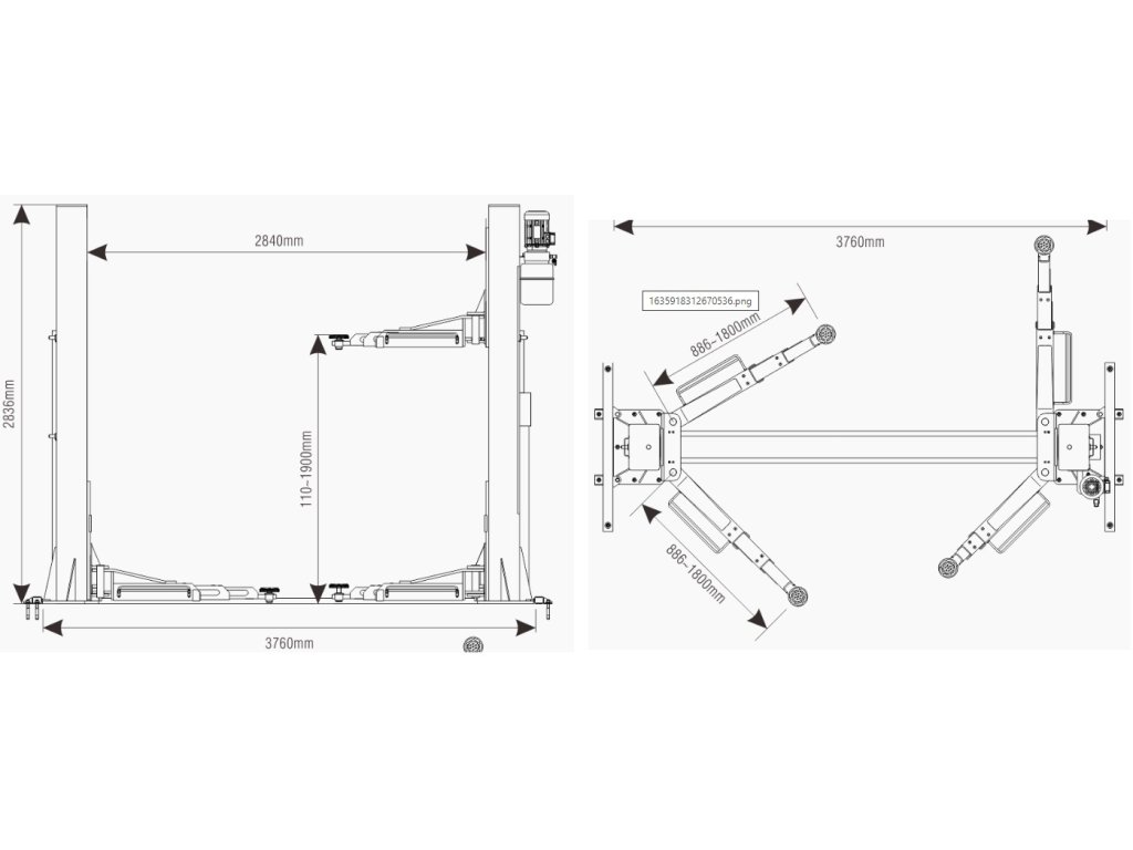 Profesionálny automobilový zdvihák s dvoma stĺpmi, určený na zdvíhanie osobných, úžitkových a podobných vozidiel do maximálnej hmotnosti 5 ton, je vhodný do garáží a pneuservisov.