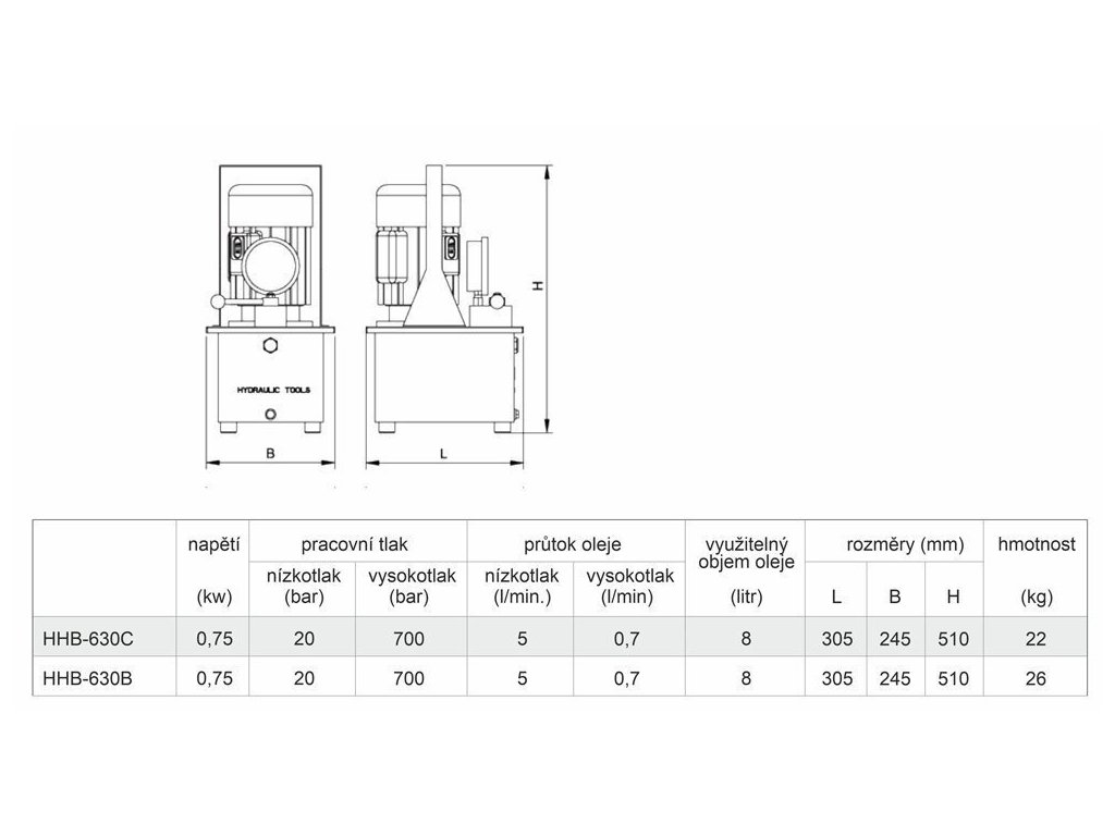 Hydraulická pumpa na elektrický pohon 230 V, pracovný tlak 700 bar, dvojrýchlostný - Genborx HHB-630C