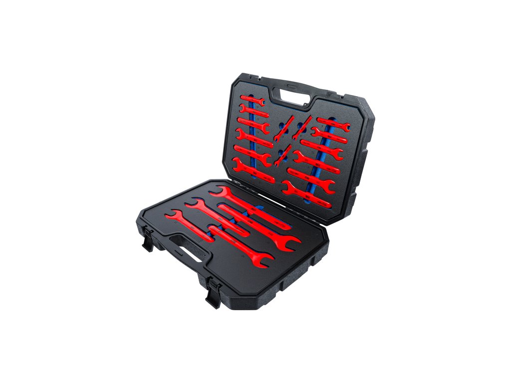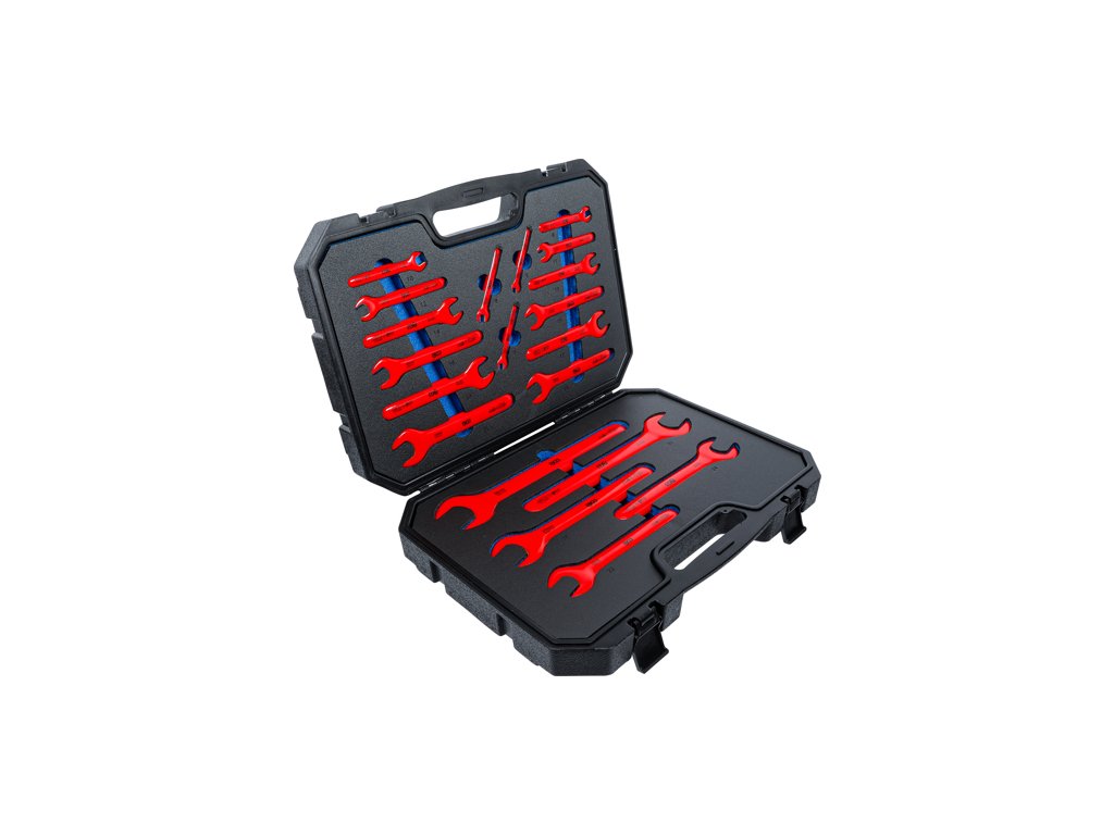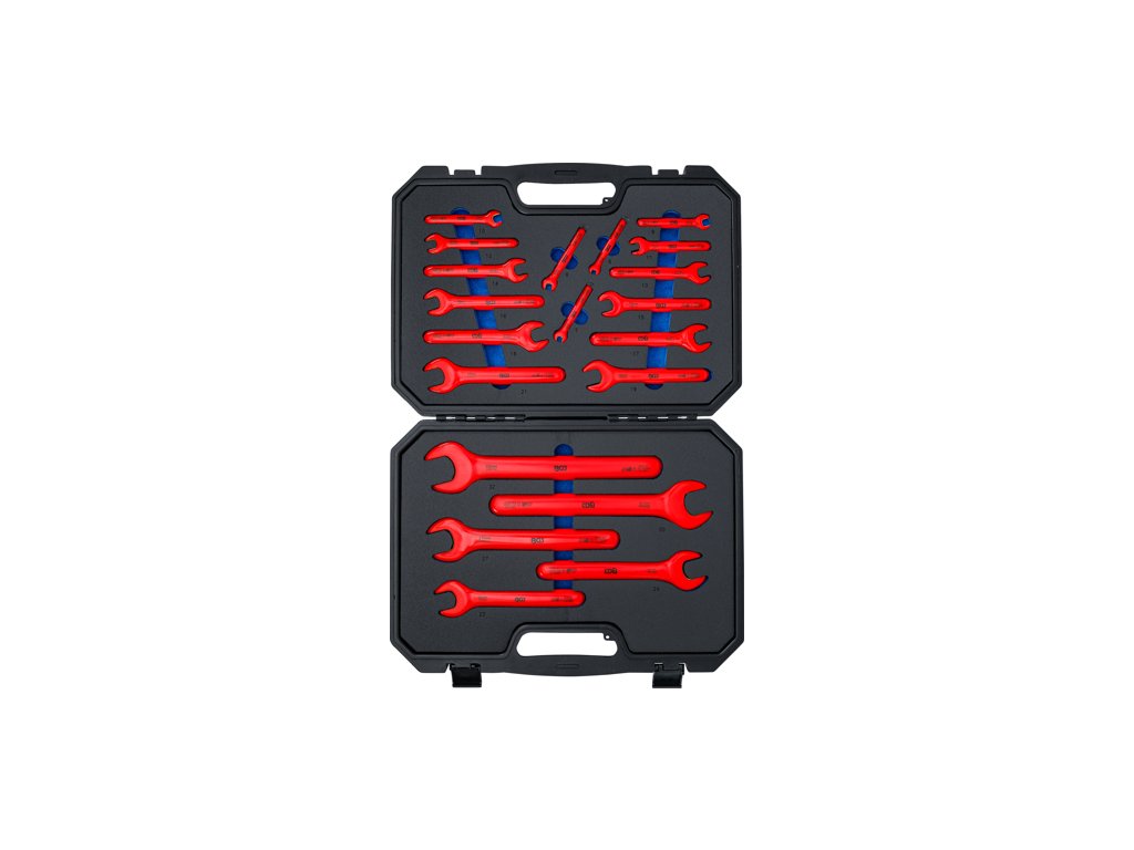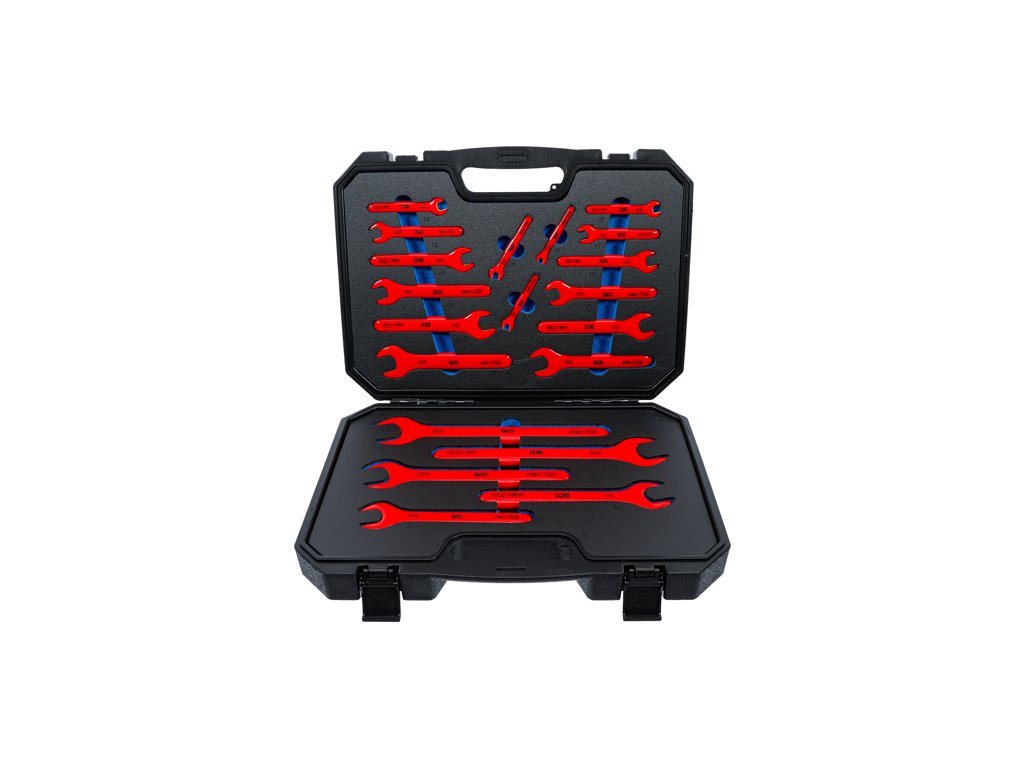 Ploché (otvorené) kľúče s izoláciou VDE pre elektrikárov, do 1000 V, rozmery 6 až 32 mm, sada 20 dielov v plastovom kufríku - BGS technic 71085