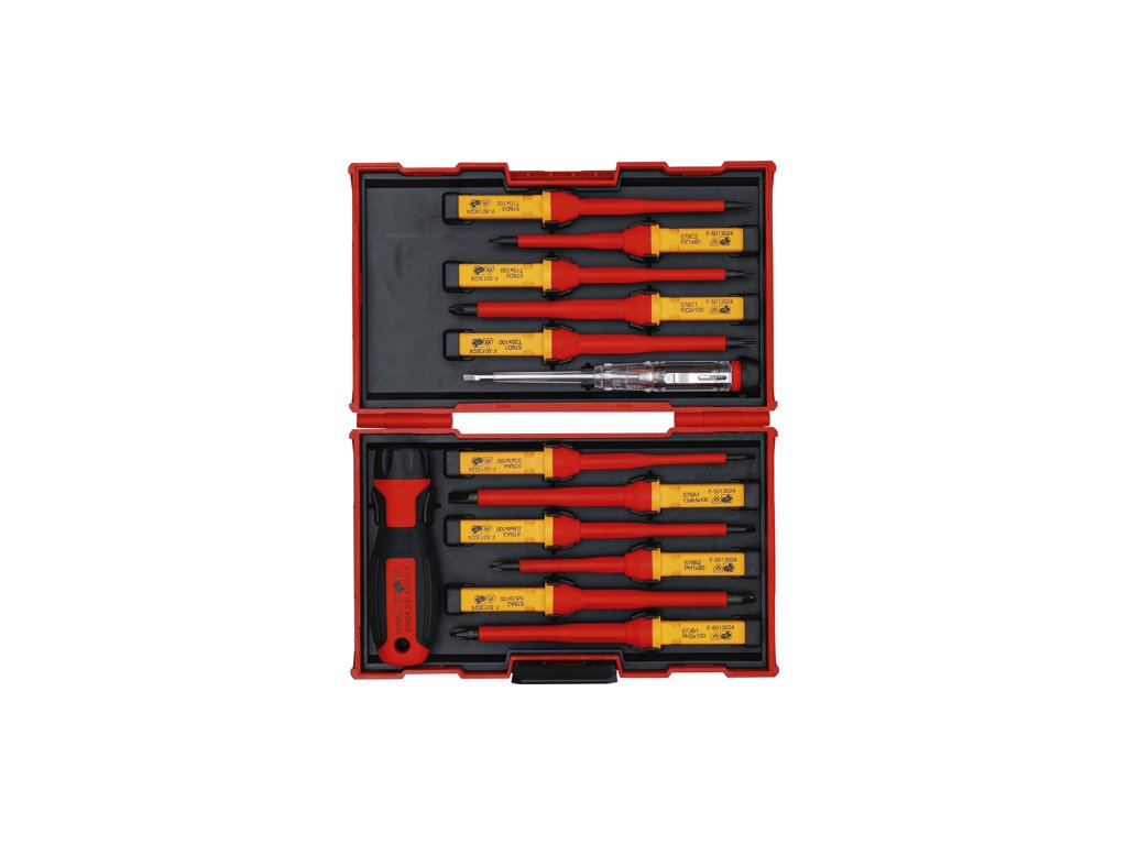 Skrutkovače s izoláciou VDE pre elektrikárov, vymeniteľné drieky rôznych profilov, sada 13 dielov s testerom v plastovom kufríku - BGS technic 35814