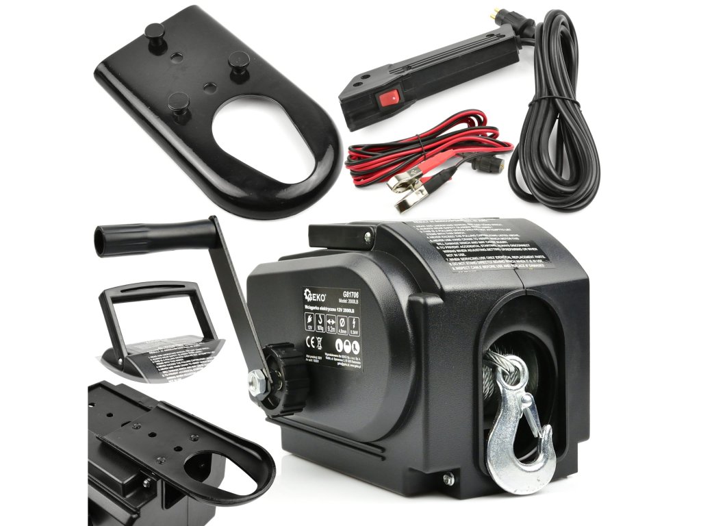 Prenosný elektrický navijak pre lode, štvorkolky a ďalšie, motor 300 W/12 V, zaťaženie až 907 kg – GEKO G81706