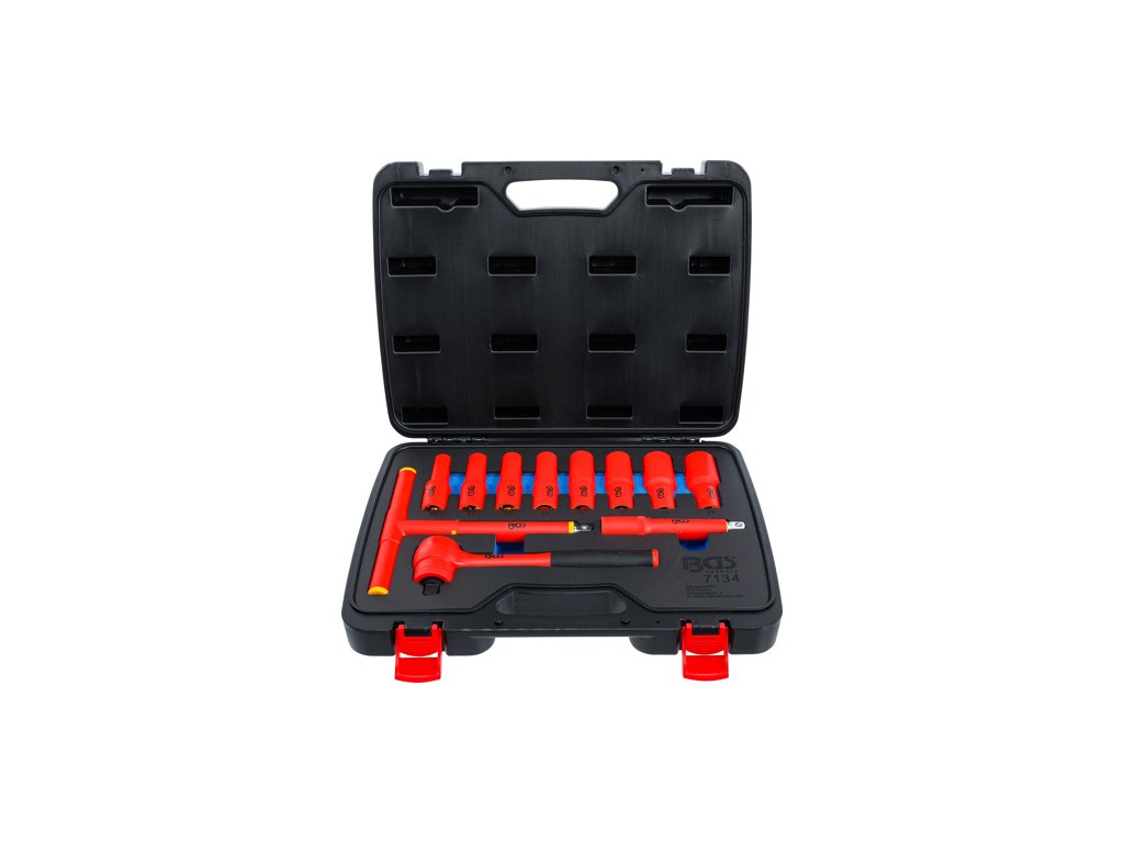 Elektrikárska súprava Gola, izolovaná VDE do 1000 V, vodiaci štvorhran 1/2" (12.5 mm), metrické šesťhranné zásuvky Pro Torque® 10 až 24 mm, sada 11 dielov v plastovom kufríku - BGS technic 7134