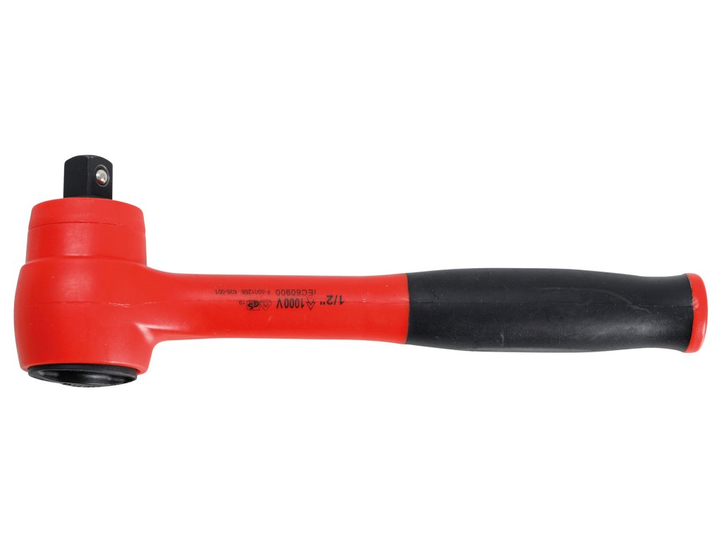 Račňa VDE pre elektrikárov, vodiaci 4hran 1/2“, izolovaná do 1000 V, 45zubový mechanizmus s prepínaním – BGS technic 702