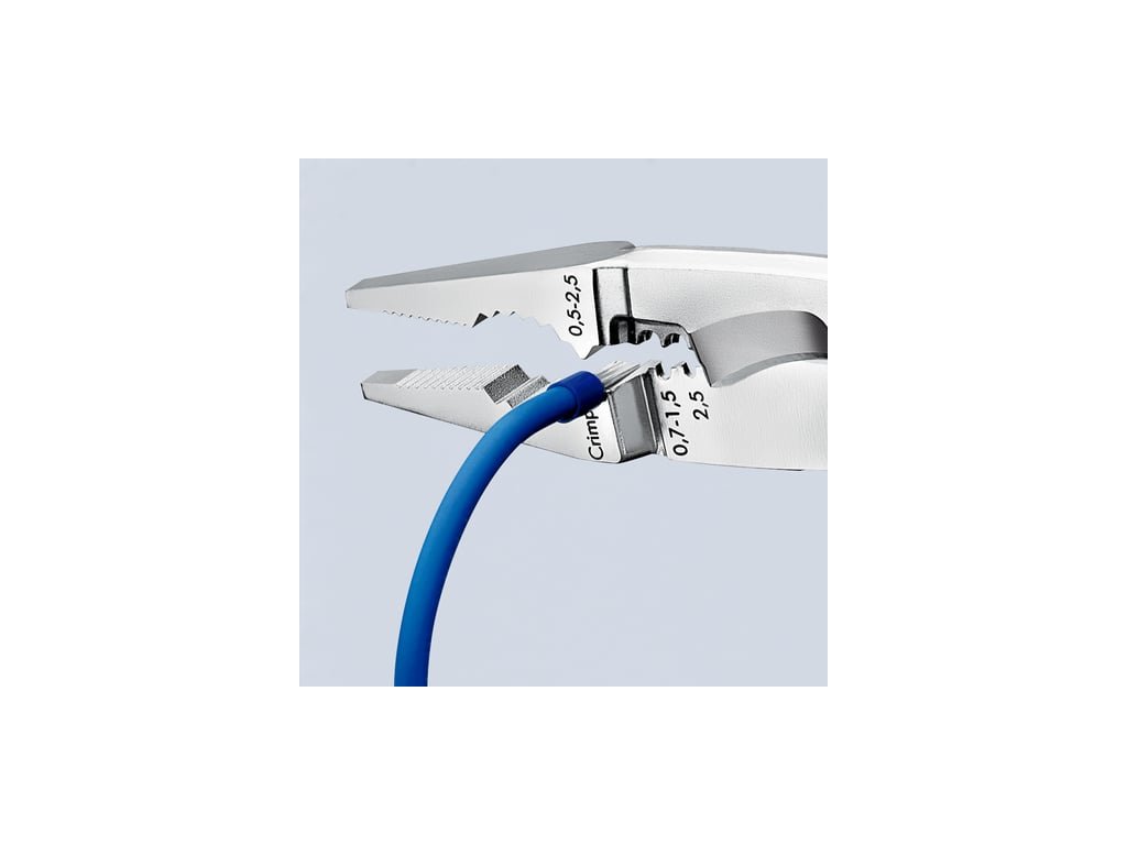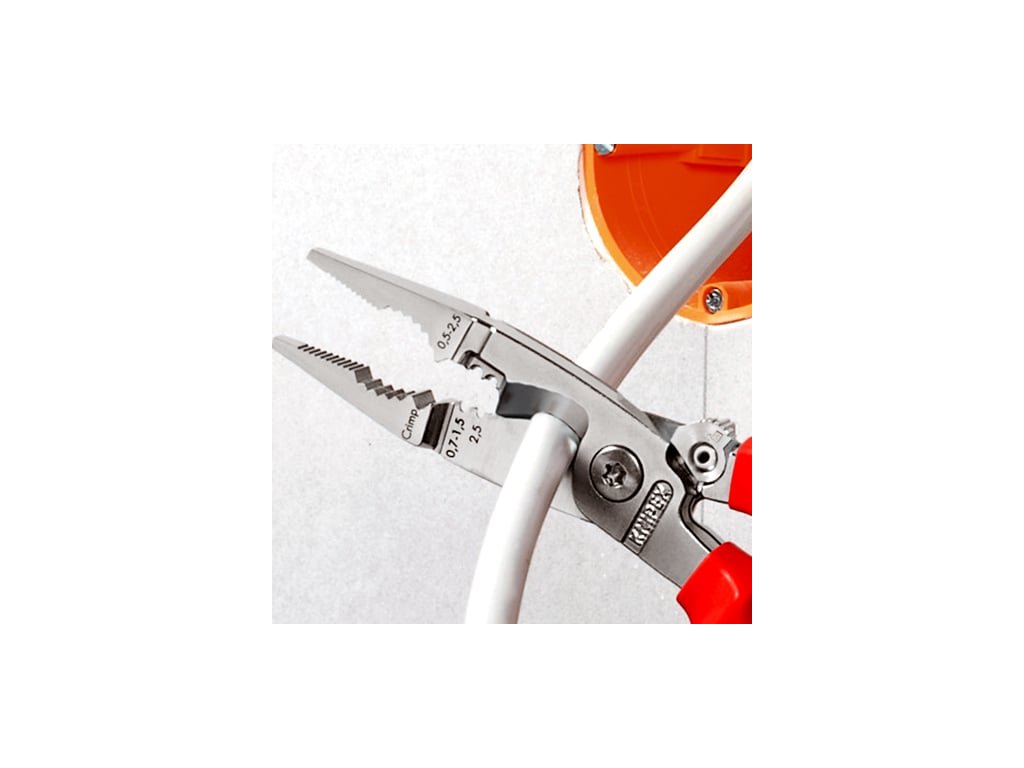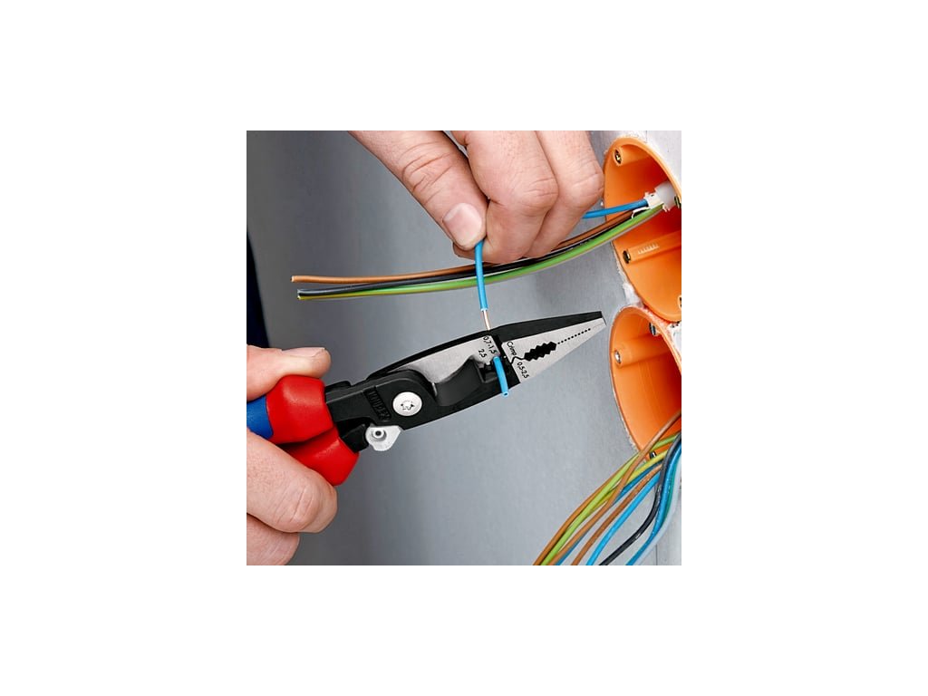 Kliešte vhodné na uchopenie plochého a okrúhleho materiálu, ohýbanie, odizolovanie, strihanie káblov, odizolovanie a lisovanie koncoviek.