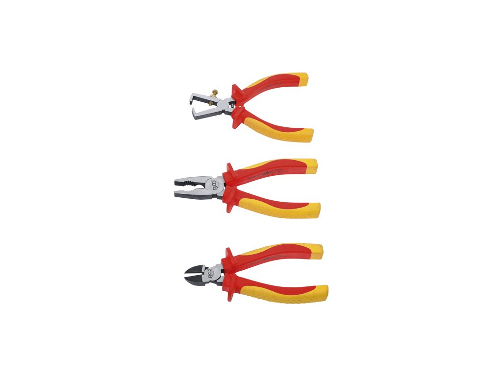 VDE izolované elektrické kliešte, štiepacie, kombinované a odizolovacie, sada 3 dielov v kufríku - BGS technical 7158