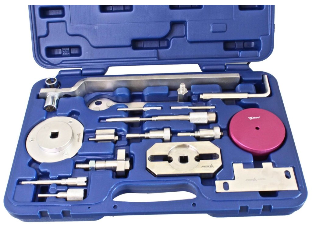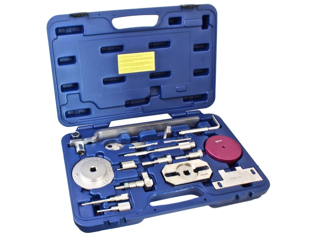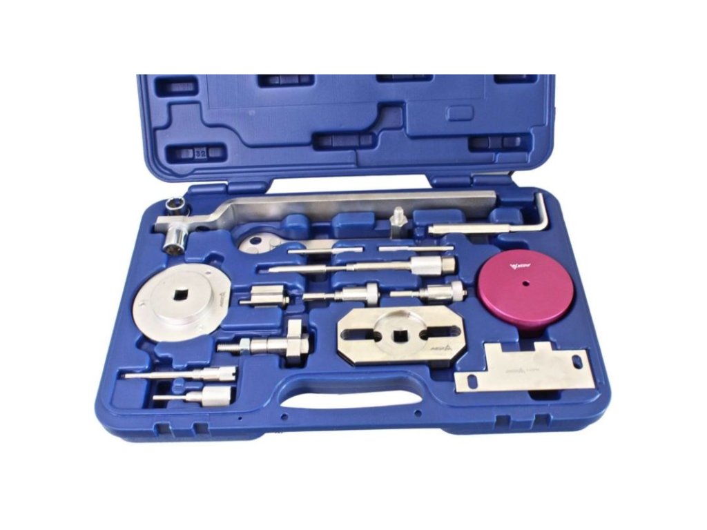 Sada obsahuje napr. Kľúč na snímač vodného čerpadla, prípravok na otáčanie kľukové hriadele ,, centrující (strediaci) dosku či aretačné prípravky na kľukový a vačkový hriadeľ.