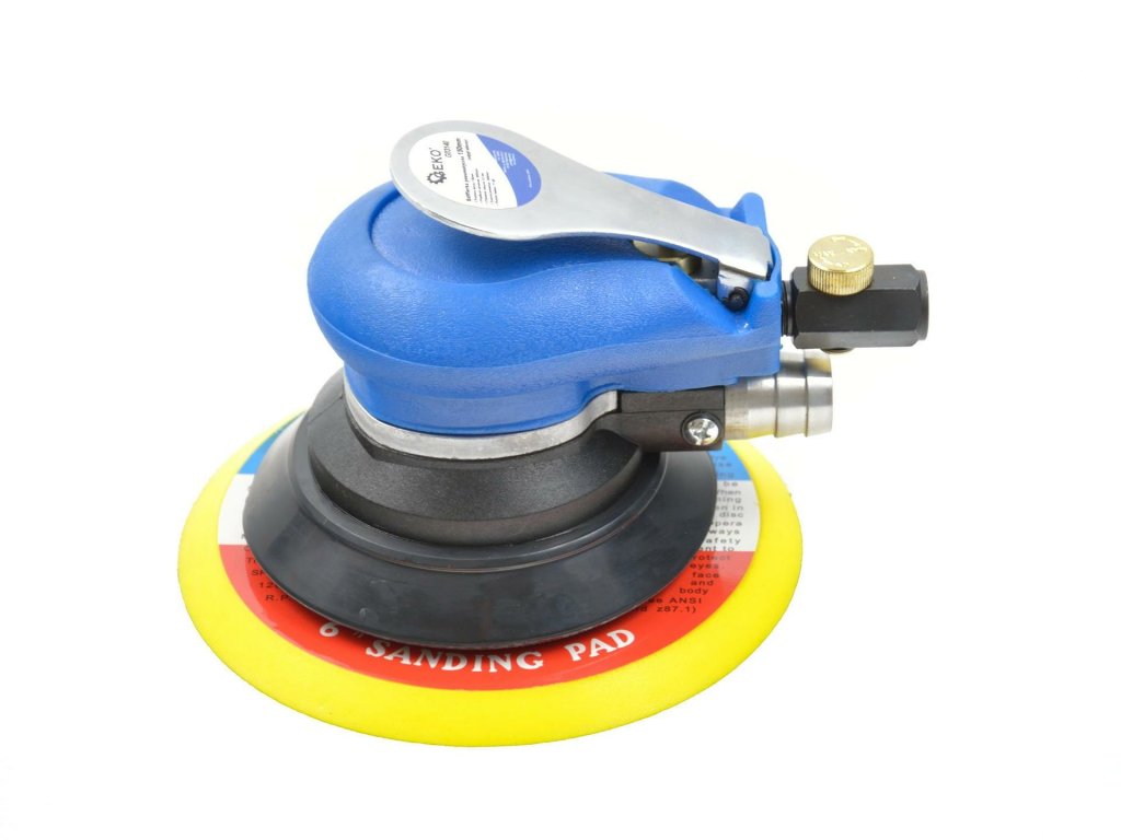 Profesionálna pneumatická excentrická brúska s hadicou pre odvod vzduchu, určená pre brúsenie tmelov, emailových hmôt, dreva alebo plastov. Odsávací kanálik v unášači brúsky bráni vzniku prachu. Vhodný spotrebný materiál: samolepiace brúsne kotúče ø 150 mm. Hadica, prachový filter a vsuvka súčasťou dodávky.