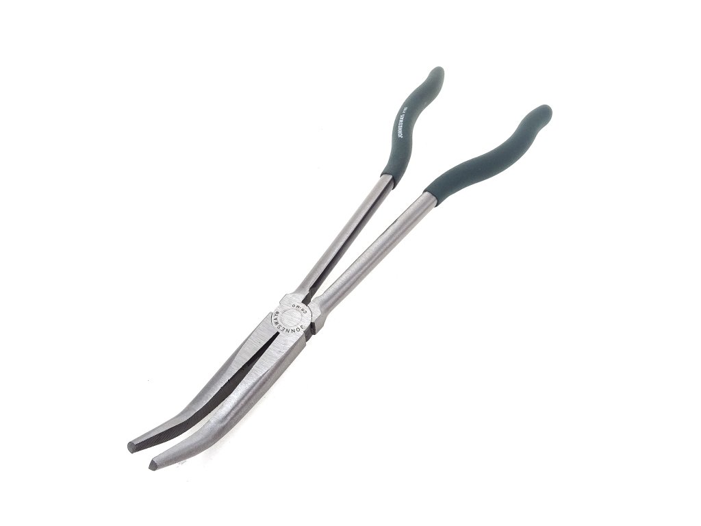 Kliešte extra dlhé 275 mm, zahnuté 45 stupňov, špicaté čeľuste - JONNESWAY P7602