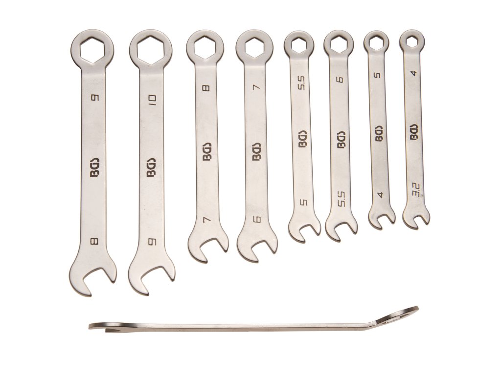 Ideálne využitie pre úzke miesta. Očková strana je cca 20 ° vyhnutá, 6hranná. Rozmery: 4-5-5,5-6-7-8-9-10 mm. |