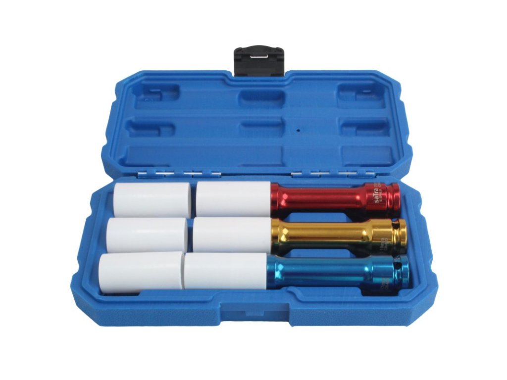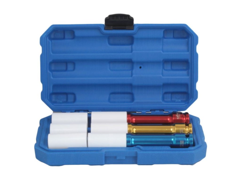 Profesionálna sada hlavíc na montáž a demontáž skrutiek zliatinových kolies bez rizika poškodenia alebo poškriabania.