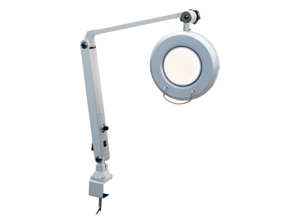 Pracovné svetlo s kruhovou žiarivkou a lupou.