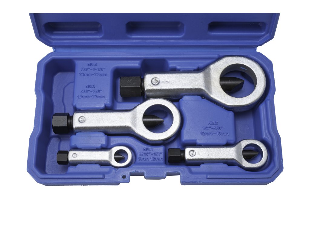 Sada 4ks strihačov poškodených, přirezlých matíc s veľkosťou 9 - 27mm.