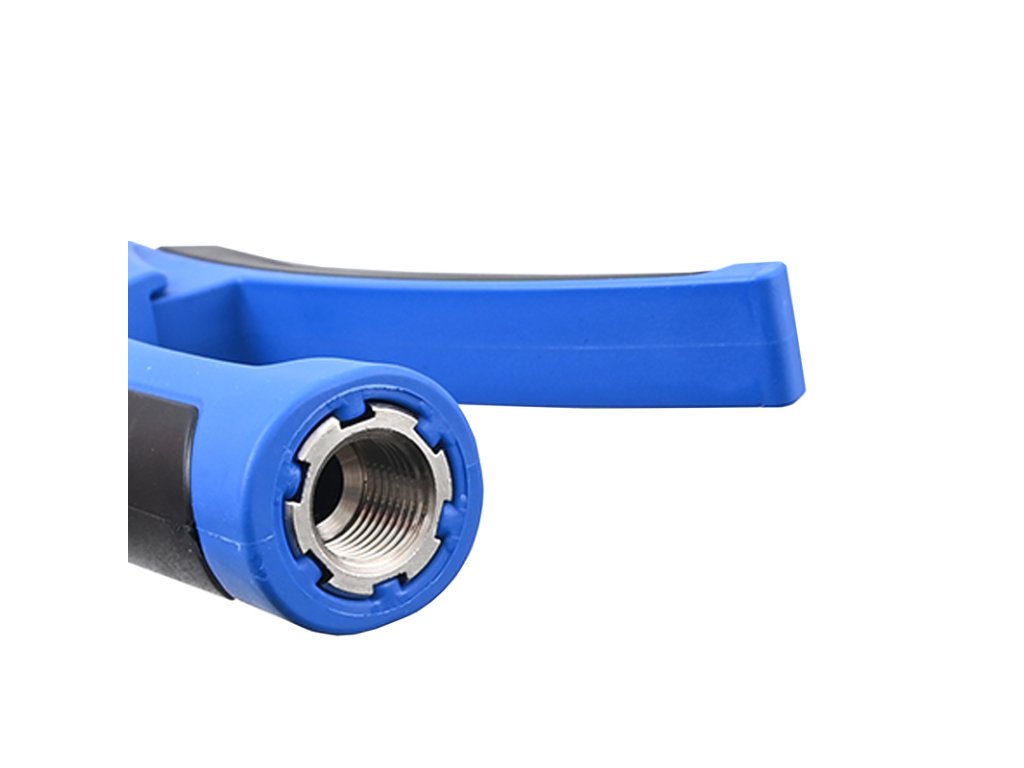 Kvalitná ofukovacia pištoľ od talianskeho výrobcu GAV disponuje dlhou smerovou tryskou vyrobenou z nerezovej ocele. Ergonomická rukoväť s mäkkými vložkami umožňuje pohodlnú prácu a príjemné uchopenie pri práci. Spúšť umožňuje plynulú reguláciu tlaku vzduchu a vďaka dlhej hubici sa hodí na vyfukovanie nečistôt z uzavretých priestorov. Hadica sa pripája do mosadznej vsuvky s vnútorným závitom, ktorá je pre vyššiu odolnosť ešte poniklovaná.