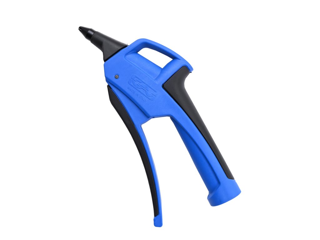 Kvalitná ofukovacia pištoľ od talianskeho výrobcu GAV disponuje plastovým adaptérom s tromi tryskami. Ergonomická rukoväť s mäkkými vložkami umožňuje pohodlnú prácu a príjemné uchopenie pri práci. Spúšť umožňuje plynulú reguláciu tlaku vzduchu a vďaka adaptéru sa hodí predovšetkým na ofukovanie veľkých plôch. Prívod vzduchu sa pripája do mosadznej vsuvky s vnútorným závitom, ktorá je pre vyššiu odolnosť ešte poniklovaná.