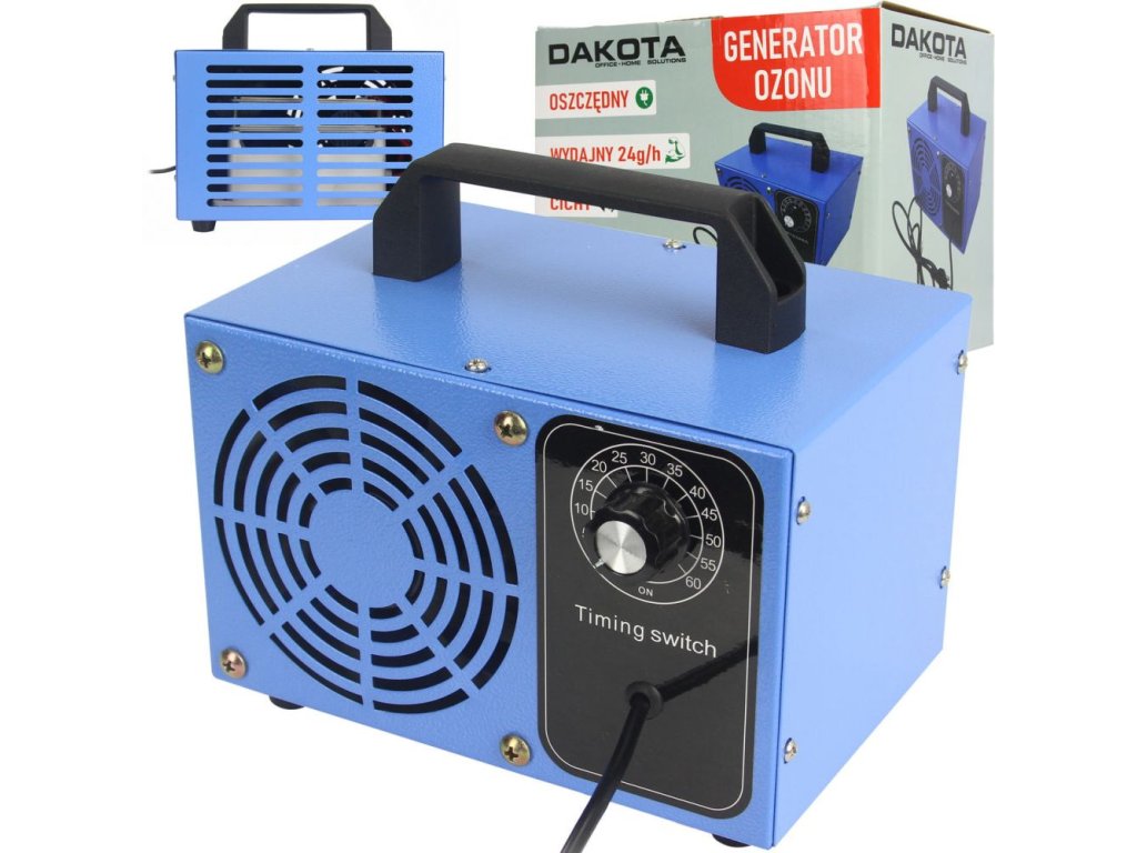 Generátor ozónu 24 000 mg/h s funkciou časovača. Ozón má silné toxické a antiseptické vlastnosti, preto sa veľmi dobre používa pri dezinfekcii miestností, vecí. Čím vyššia je účinnosť, tým rýchlejšie možno dosiahnuť vysokú koncentráciu ozónu v miestnosti. Obsluha ozonátora je veľmi jednoduchá - stačí ho pripojiť k napájaniu a pomocou ovládača nastaviť požadovaný čas prevádzky.
