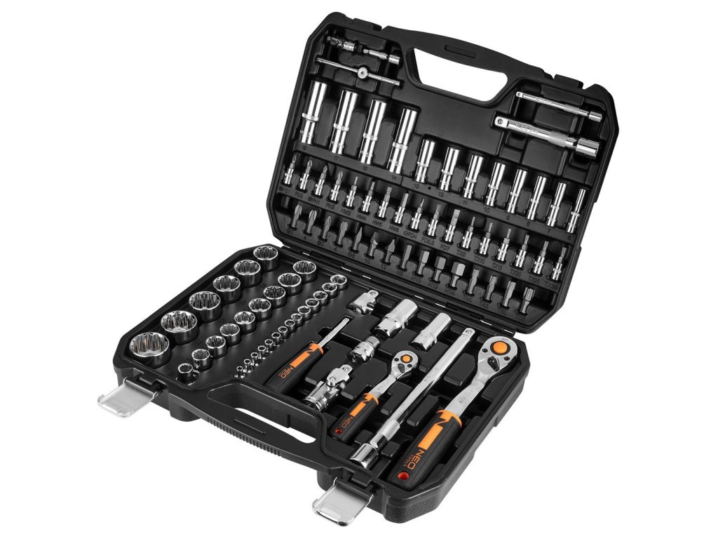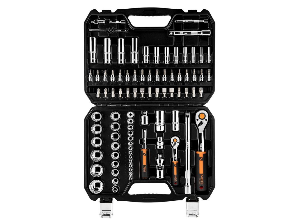 Sada gola s račňami 1/2" a 1/4", presná račňa s 90 zubami, nový patentovaný dizajn rukoväte, 25 rokov záruka, 86 ks - NEO tools 10-060