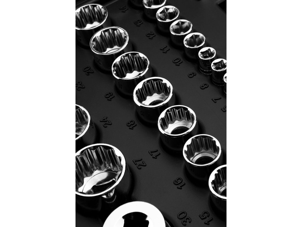 - 1/2" šesťhranné nástrčné hlavice: 10, 13, 15, 16, 17, 18, 19, 20, 21, 22, 23, 24, 27, 30, 32 mm