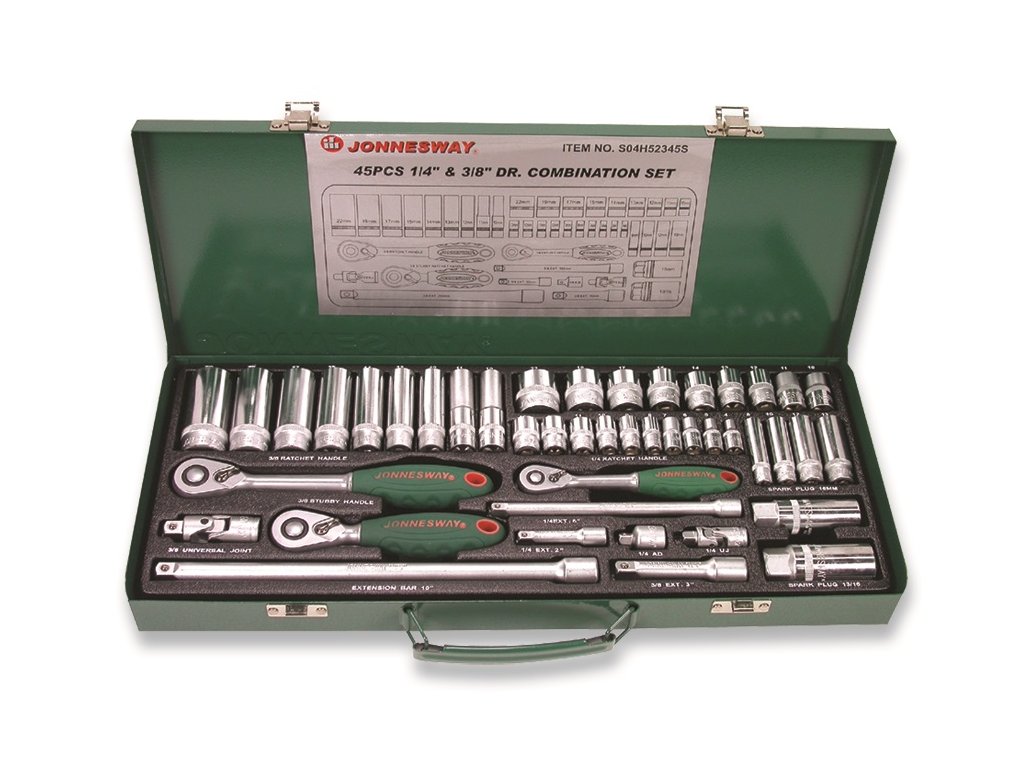Gola sada 1/4" a 3/8", 6hranné hlavice, 45 kusov - JONNESWAY S04H52345S