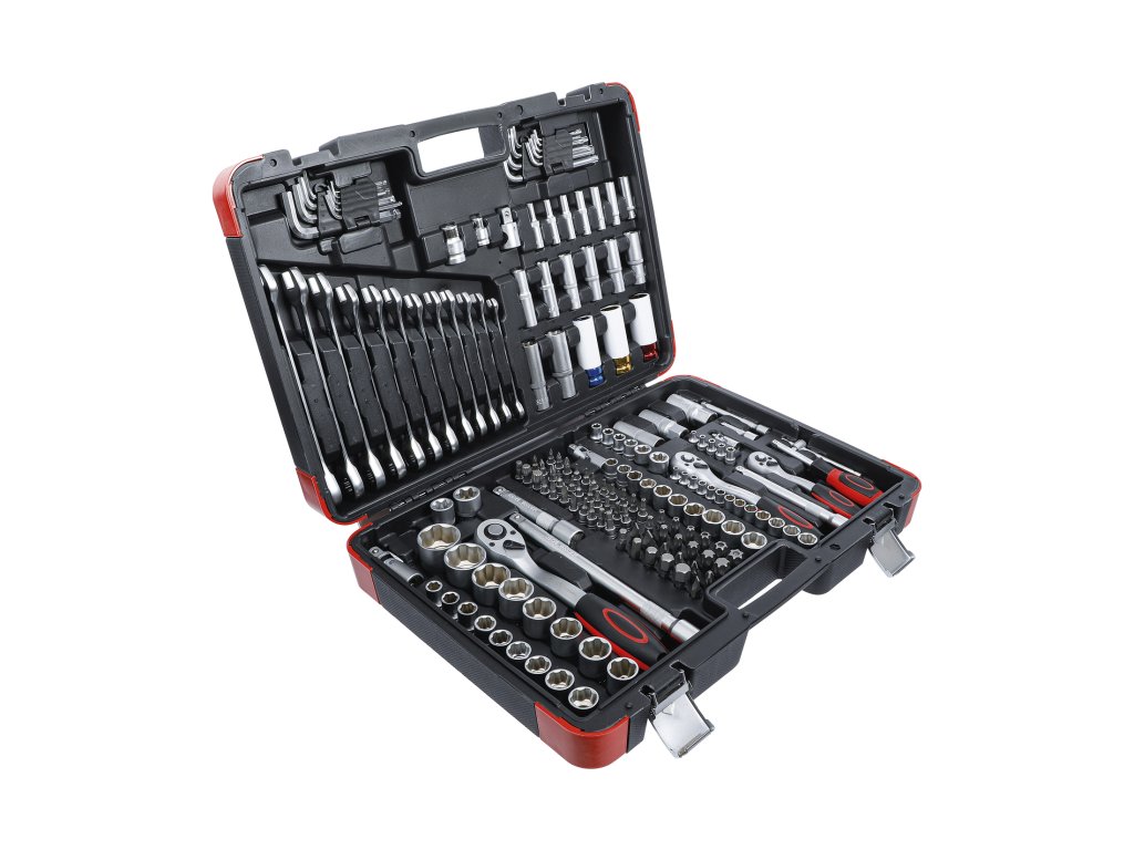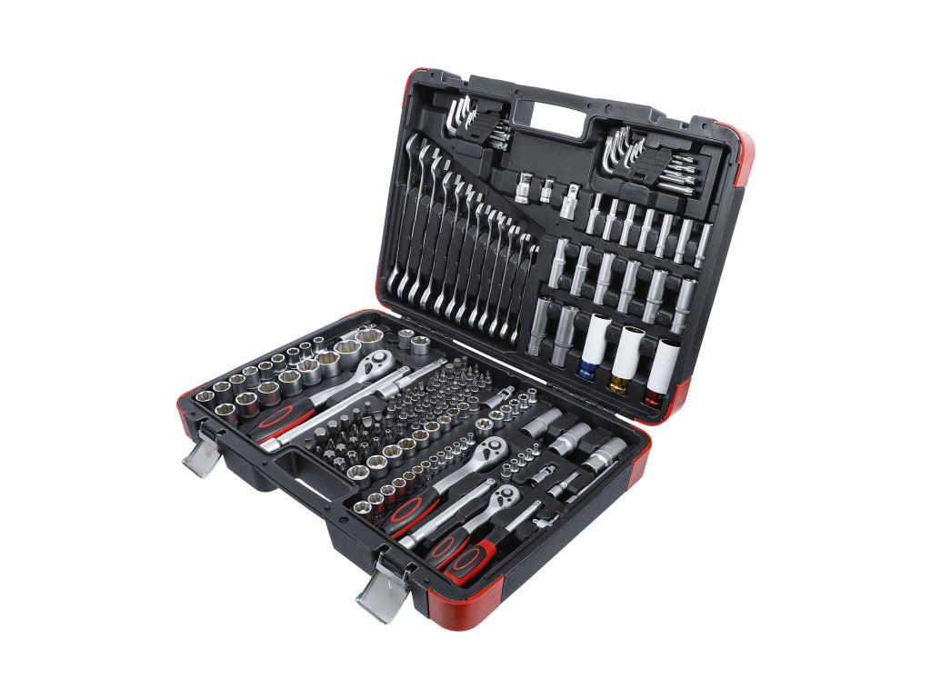 Gola sada s náradím v metrických rozmeroch, vodiace 4hran 1/4 ", 3/8" a 1/2 ", 176 dielov v plastovom kufri - Kraftmann 15217