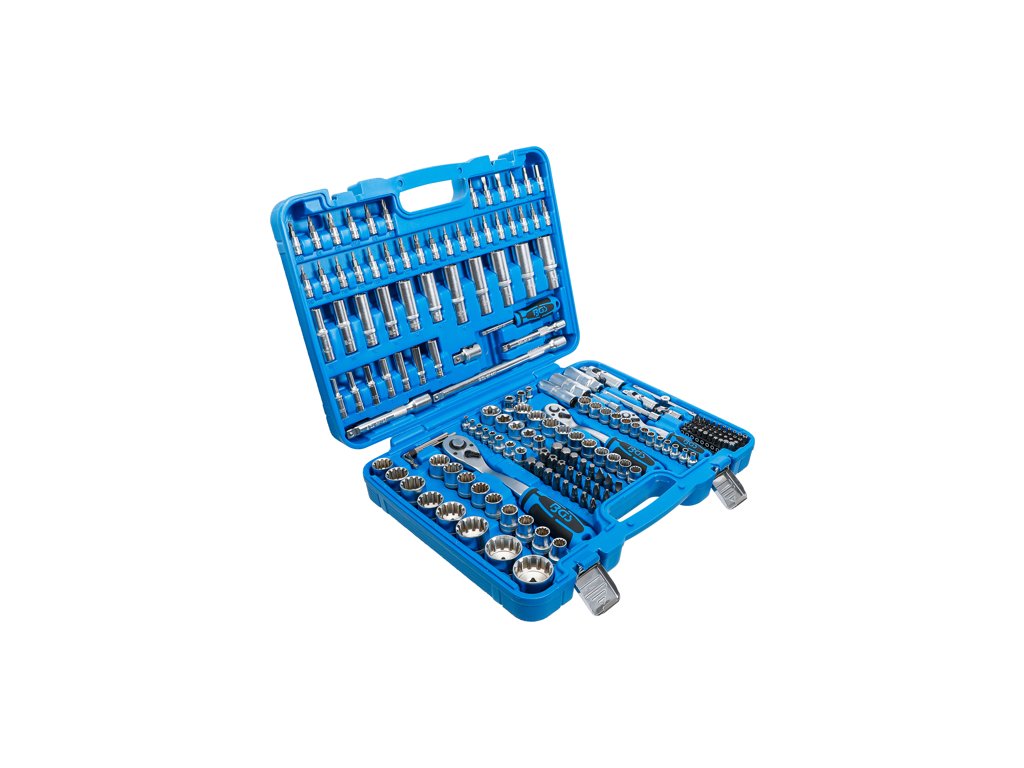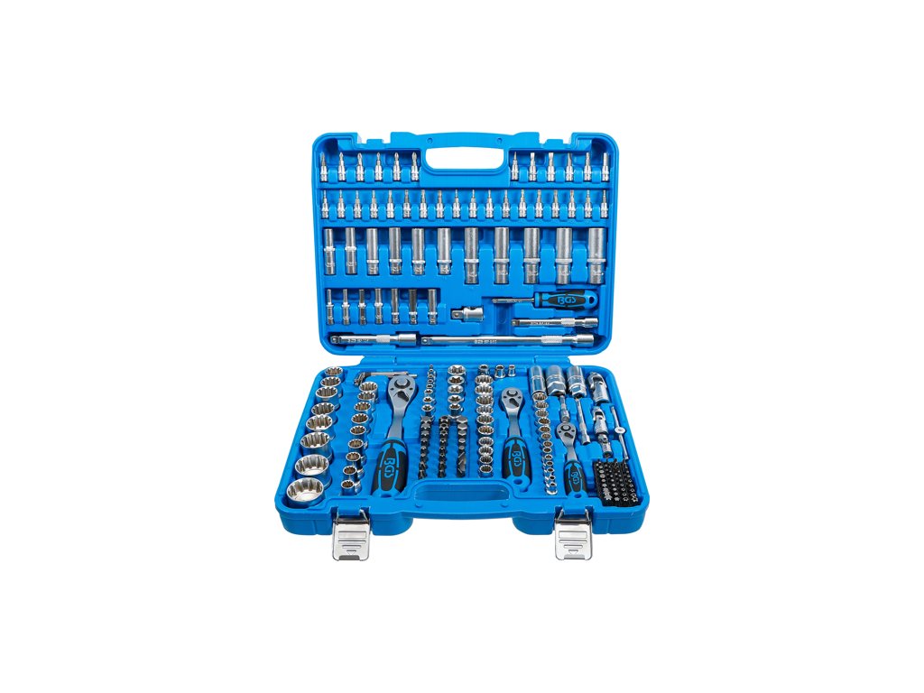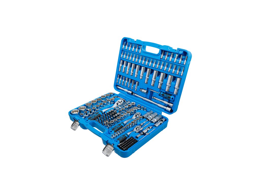 Univerzálna sada Gola s nástrčnými hlavicami Gear Lock, 1/4", 3/8" a 1/2", vodiace 4 hrany, 192 dielov v plastovom kufríku - BGS technical 2247