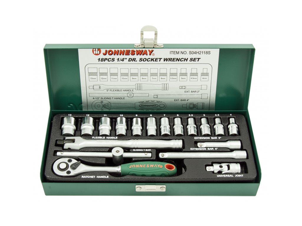 Gola sada 1/4", 6 hranné hlavice, 4-13 mm, 18 kusov - JONNESWAY