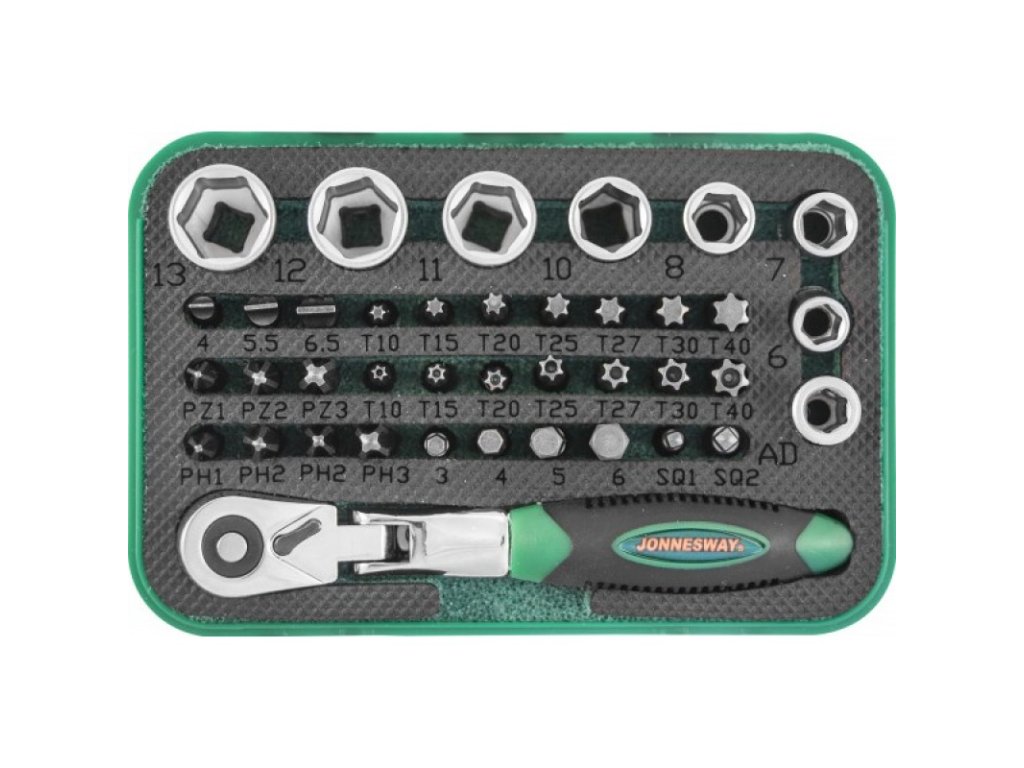 Gola sada 1/4", nadstavce, bity a kĺbová račňa, 40 kusov - JONNESWAY RD02040S