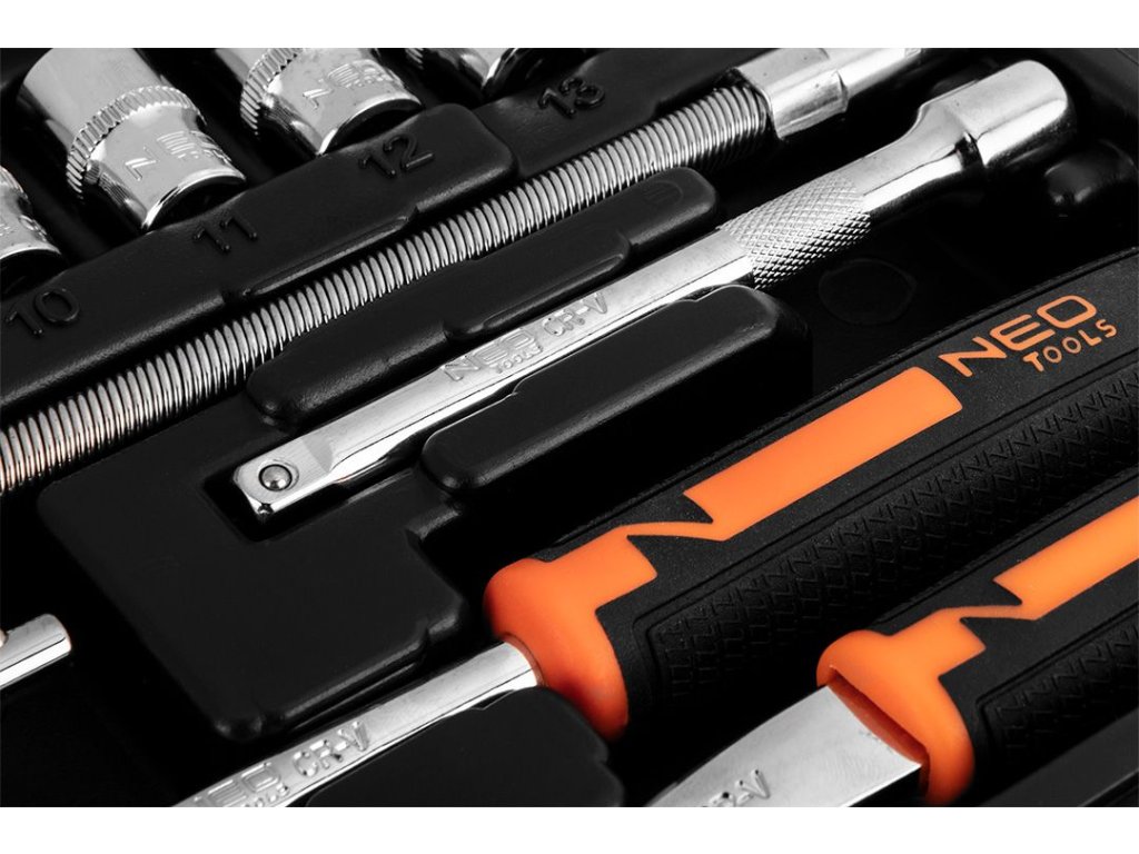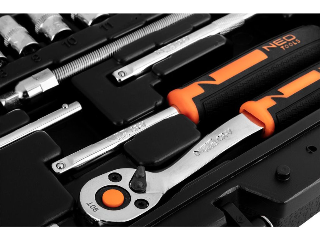 Sada na goly 1/4", presná račňa s 90 zubami, nový patentovaný dizajn rukoväte, 25 rokov záruka, 46 ks - NEO tools 10-004