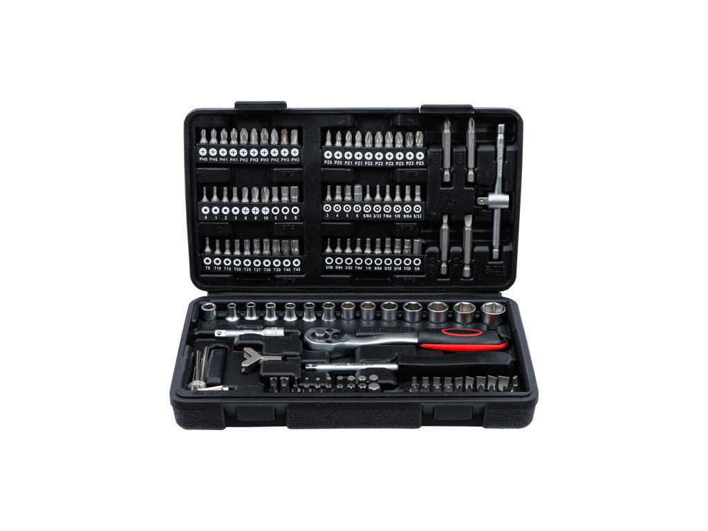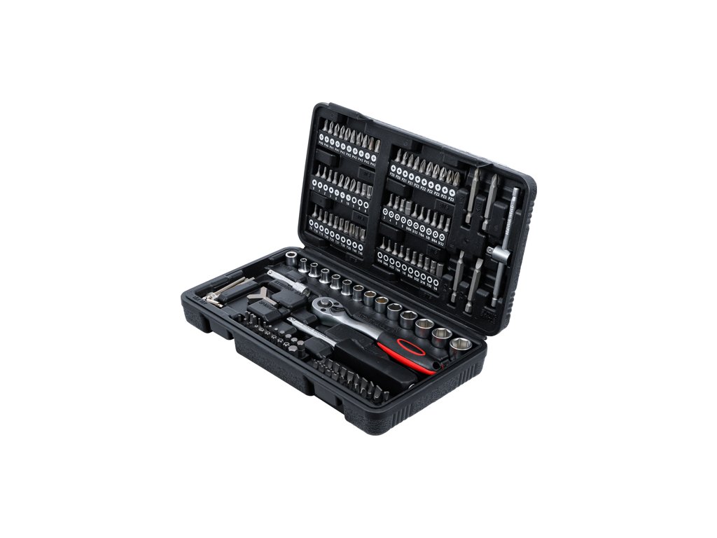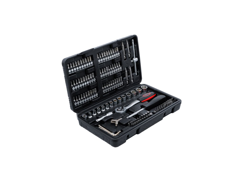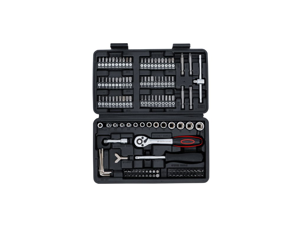 Kvalita spracovania: vyrobené z chróm-vanádiovej (Cr-V) ocele, povrch je pochrómovaný v matnom prevedení. Súbor obsahuje: 1x 1/4" račňa: ľavá-pravá prepínanie s páčkou, vyhadzovacie tlačidlo - 7x Kľúč Imbus zahnutý, tzv. H1.27 - H1.5 - H2 - H2.5 - H3 - H4 - H5 - 9x Bit 1/4" plochý: 3 - 4 - 4.5 - 5 - 5,5 - 6 - 6,5 - 7 - 8 mm - 10x Bit 1/4" Phillips cross (tzv. 2x PH0 - 2x PH1 - 4x PH2 - 2x PH3 - 10x Bit 1/4" cross-PEOPLE (tzv. 2x PZ0 - 2x PZ1 - 4x PZ2 - 2x PZ3 9x Bit 1/4" Imbus metrika: H1.5 - H2 - H2,5 - H3 - H4 - H5 - H5,5 - H6 - H8