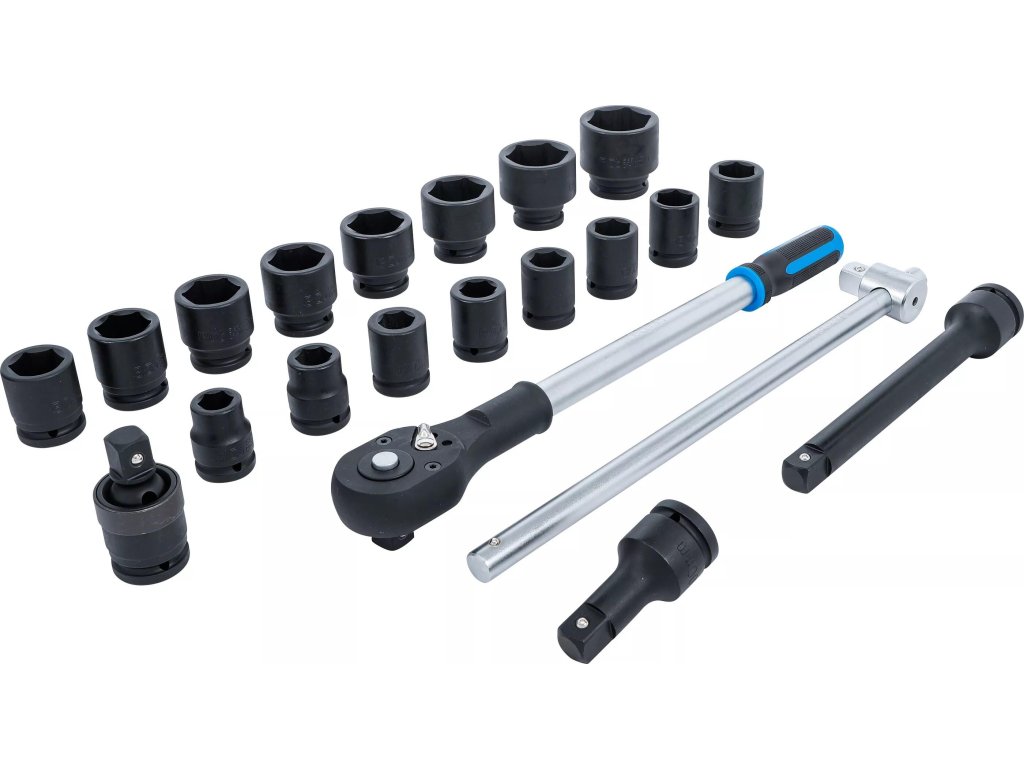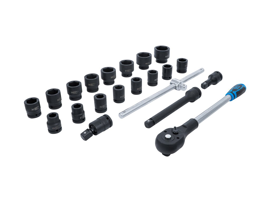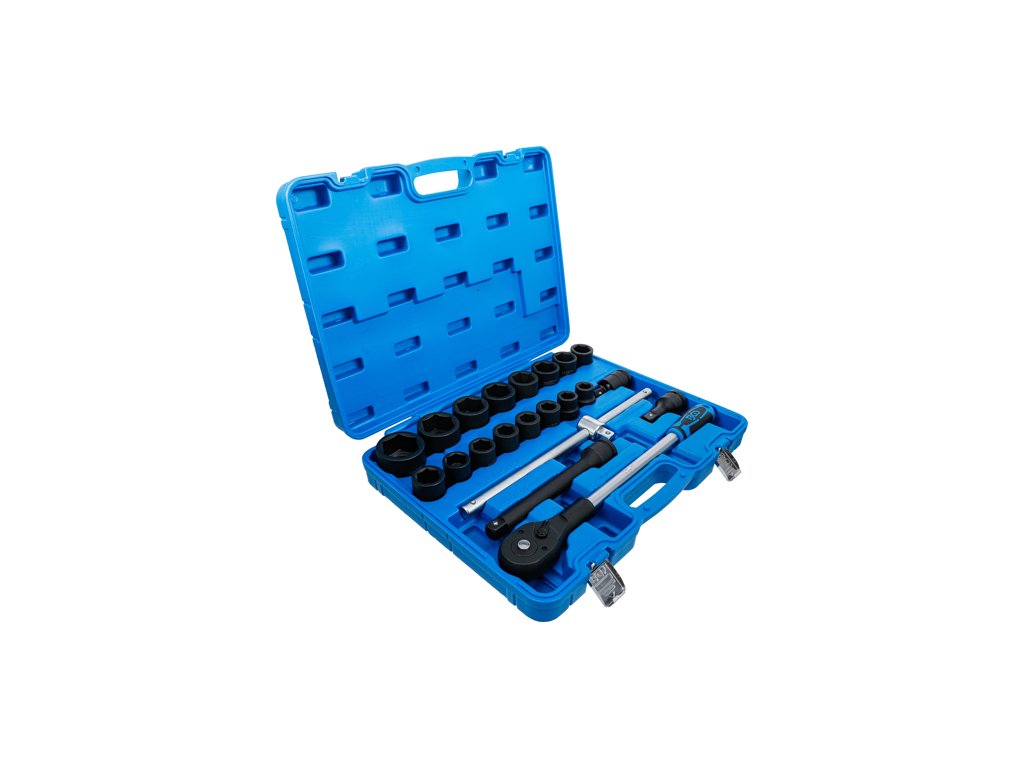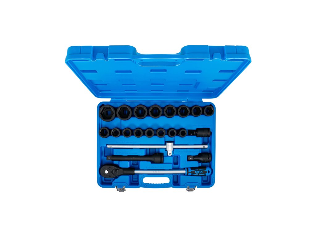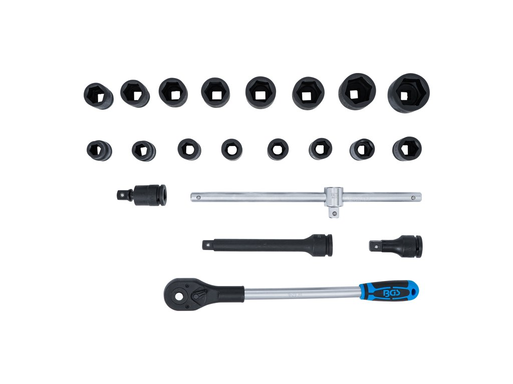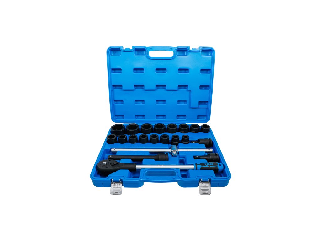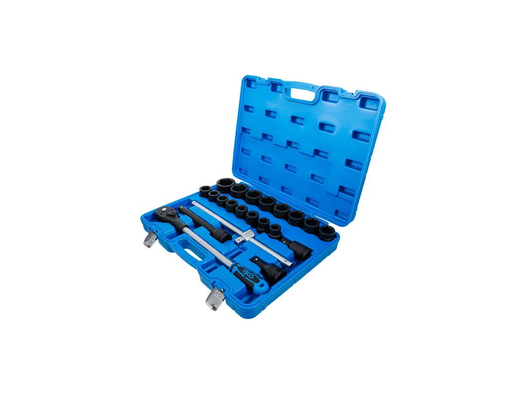 Súprava na góly v metrických rozmeroch, 3/4" (20 mm) 4 hrany vodiaceho prvku, 6 hran "matíc" úderných zásuviek, 21 dielov v plastovom kufríku - BGS technical 5258