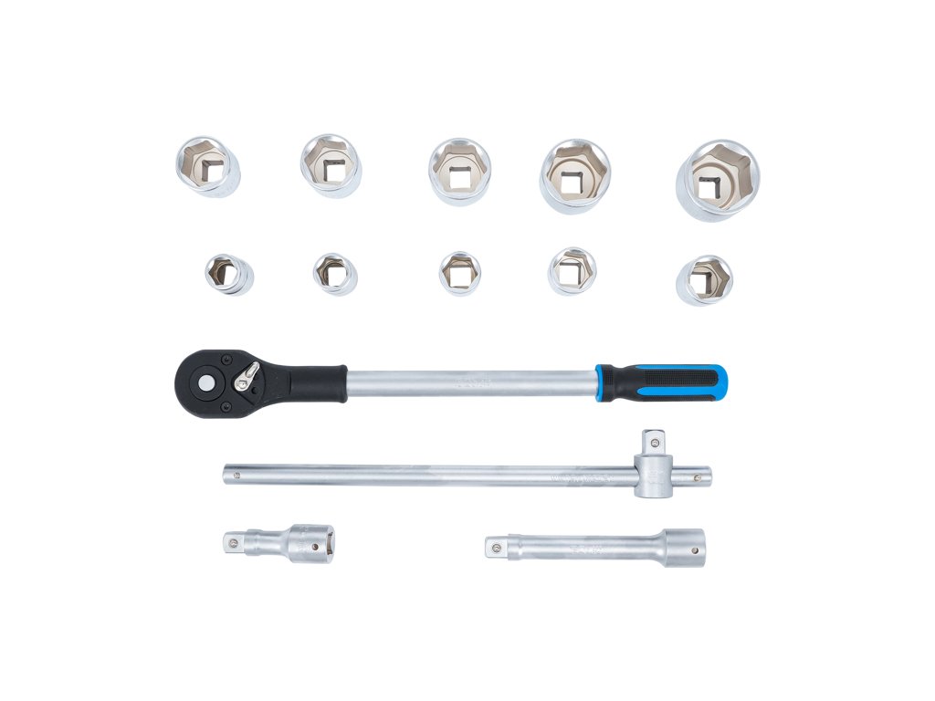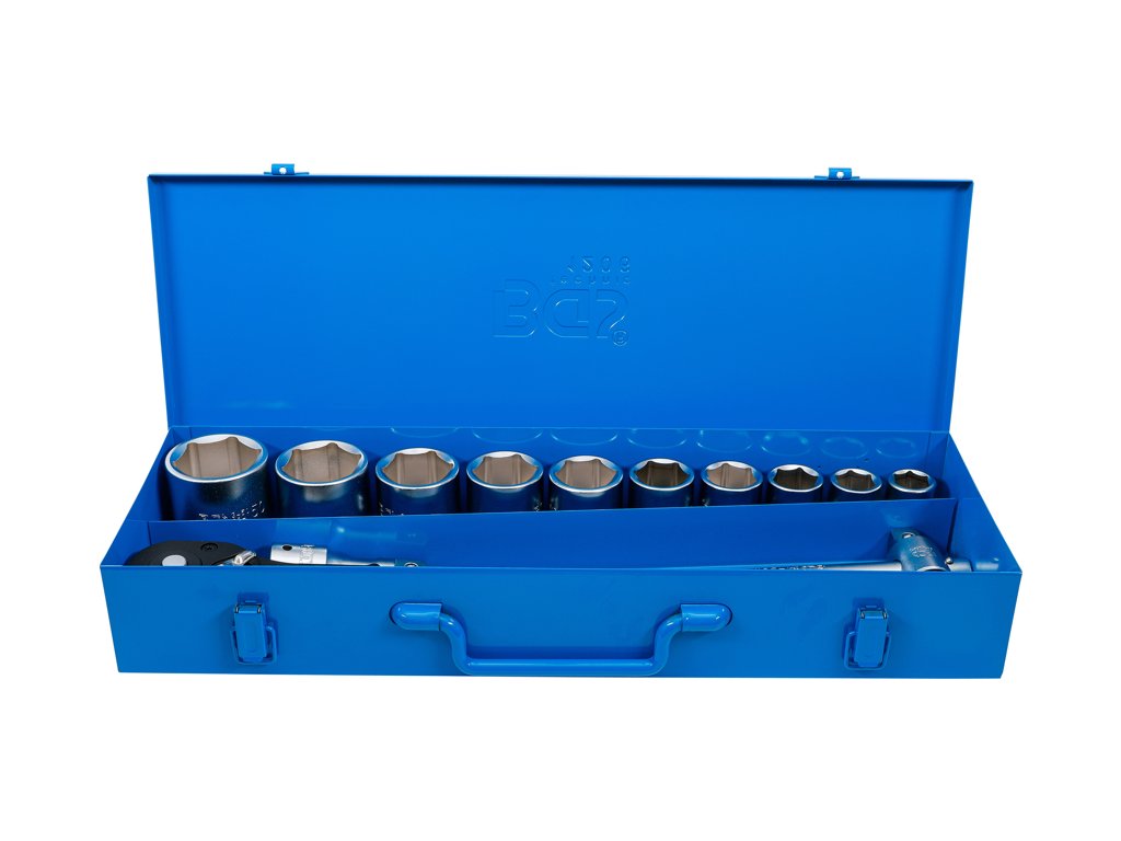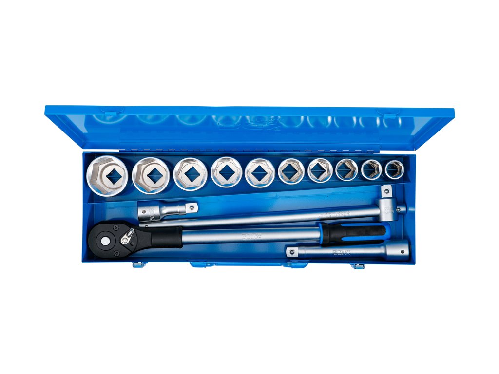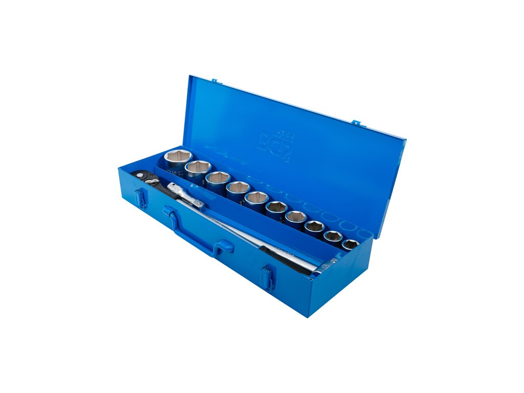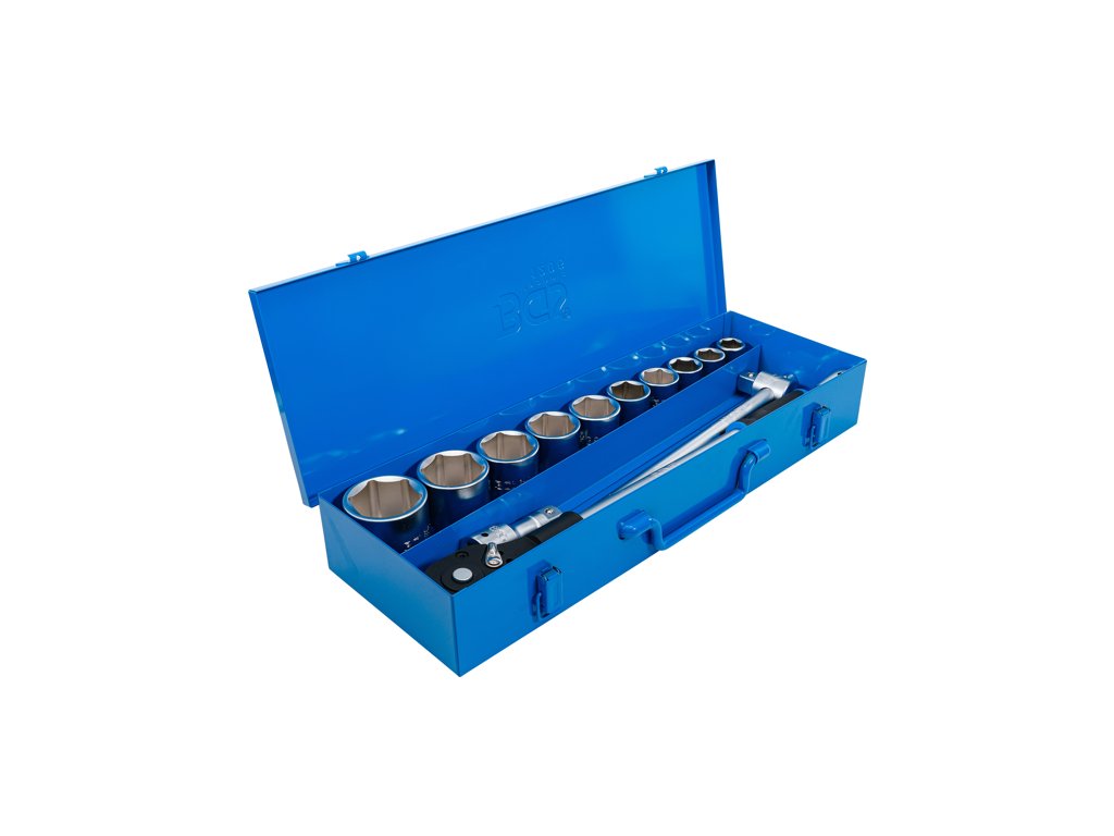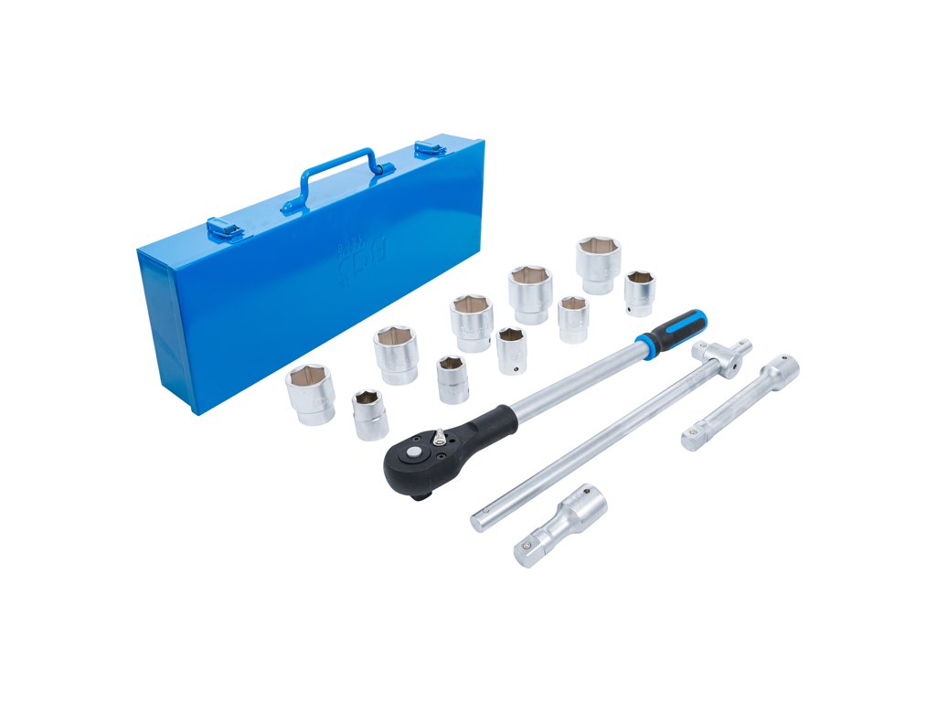 Súprava na góly v metrických rozmeroch, 3/4" (20 mm) vodiaca lišta, 6-hranné nástrčné "matice", 14 dielov v kovovom puzdre - BGS technical 1206