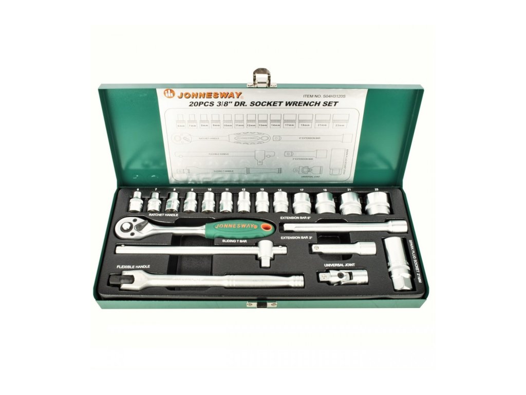 Gola súbor metrických rozmerov, sprievodca štyrihrana 3/8", veľkosť hlavne 6-23 mm, 20diely v kovovom puzdre typu bullnose - JONNESWAY S04H3120S.