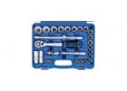 Gola sada 3/4, s teleskopickou račňou s 24 zubami a prepínaním smeru otáčania, rozsah hlavíc 19 - 50 mm, s predĺženiami, šesťhranné hlavice (orechy), 16 ks dielov – SATRA...