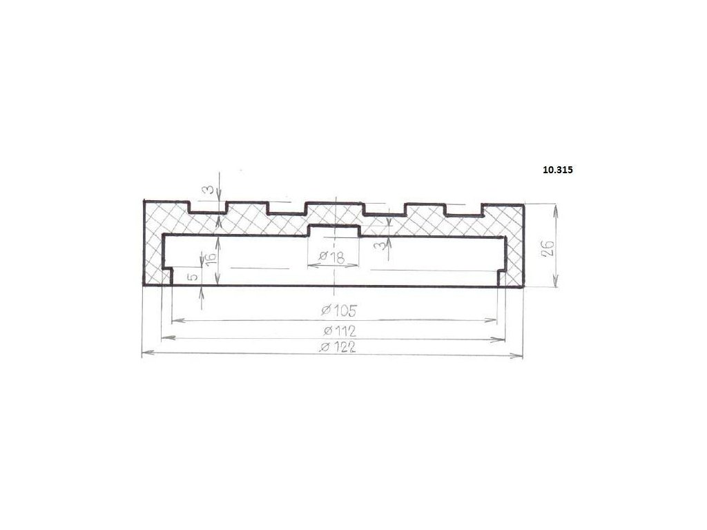 Gumová podložka zdviháka 123x28 mm, guľatá s golierom