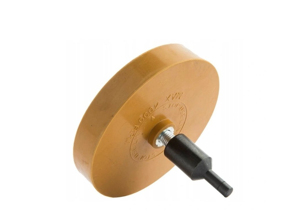 Kotúč sa pomocou adaptéra pripevní k vŕtačke alebo brúsnej hlave a gumový kotúč ľahko odstráni zvyšky lepidla.