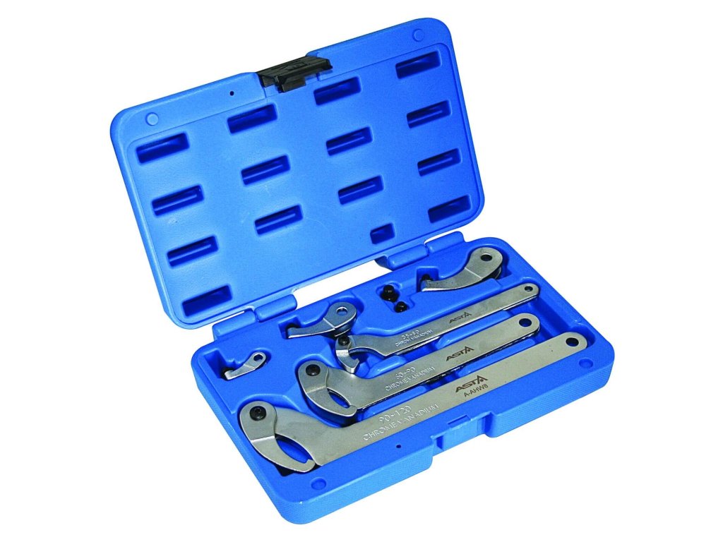Kľúče hákové kĺbové, "C-kľúče", 35-120 mm, sada 8 kusov - ASTA A-AHW8