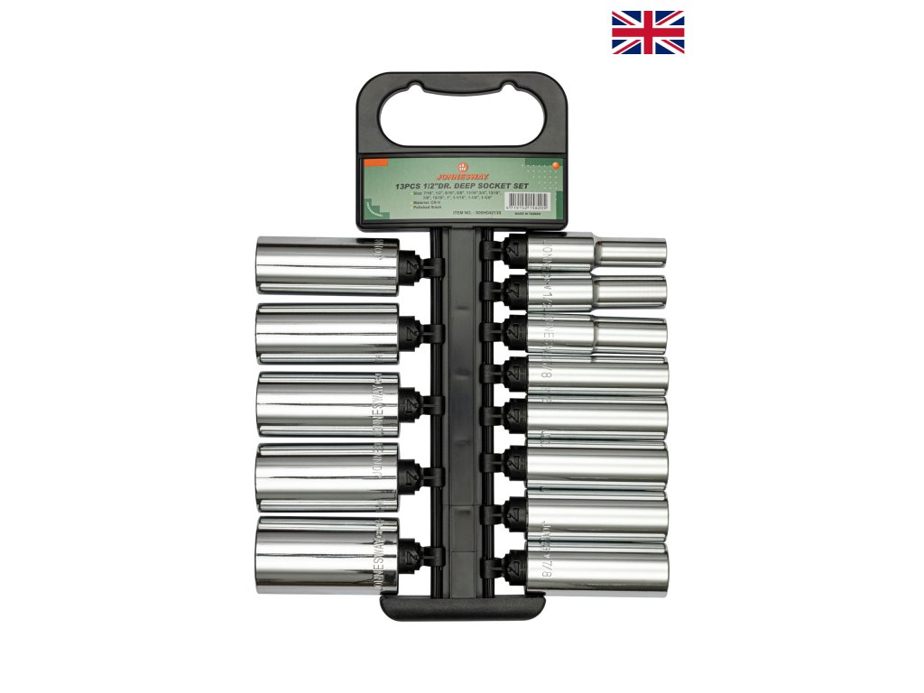 Nástrčné hlavice 1/2", palcové, 6hranné, predĺžené, 13 ks, lišta - JONNESWAY S05HD4213S