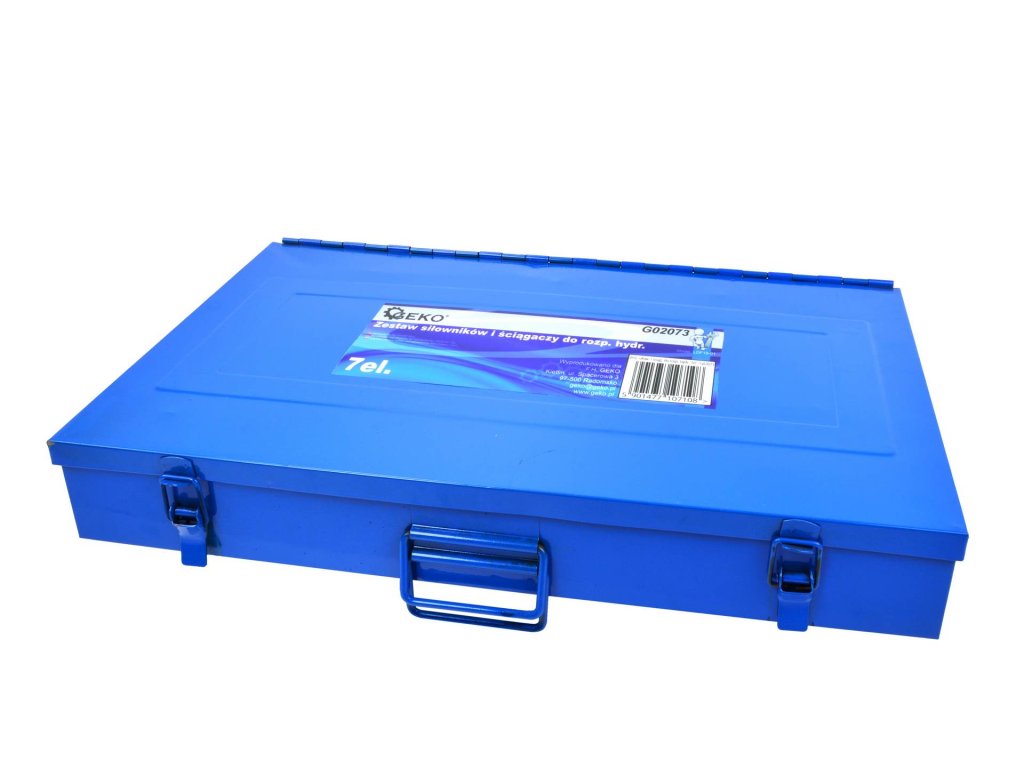Súprava na hydraulické opravy karosérie, sťahováky a rozpery, 7 kusov v kovovom kufríku
