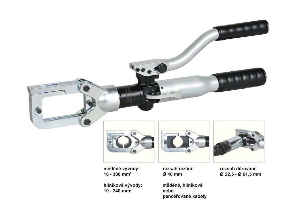 Nástroj má jednu pracovnú hlavu – vymeniteľné lisovacie čeľuste a dierovacie razidlá a značný rozsah strihania káblov.