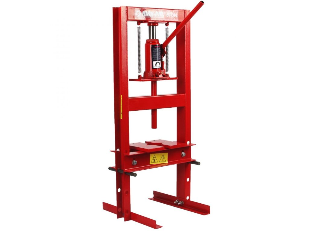 Hydraulický lis s pracovným tlakom 6t určený na stláčanie, lisovanie v dielňach, garážach, poľnohospodárstve, lesníctve, pre remeselníkov, v priemysle. Rám je zosilnený proti mechanickému poškodeniu. Nastaviteľný stôl je možné umiestniť až do 4 polôh.