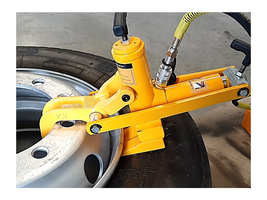Používa sa pri montáži a demontáži pneumatík nákladných áut, autobusov, traktorov, nakladačov a zemných a lesných strojov a podobné techniky s oceľovými ráfikmi. Pätka je odtlačená hydraulicky silou 10 ton.