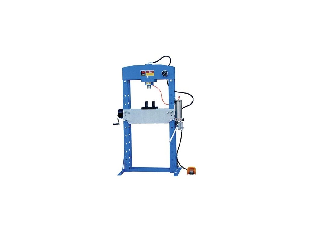 Stojanový hydraulický lis sa zvarenou robustnou konštrukciou pre univerzálne / profesionálne dielenské použitie s nožným ovládaním pneumaticko-hydraulickej jednotky pomocou multiplikátora (ručné ovládanie zostáva ako alternatíva) vyniká kvalitné hydraulikou a vysokou prevádzkovou spoľahlivosťou a životnosťou. Je vybavený kontrolným tlakomerom a lisovacie stôl sa pre uľahčenie presunu ovláda ručným kľukovým mechanizmom.