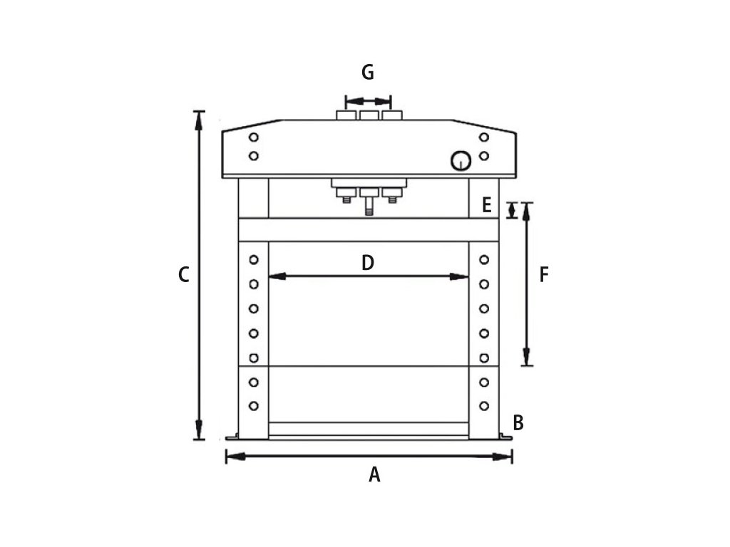 Hydraulický lis s robustným zváraným rámom s desiatimi polohami výškového nastavenia.