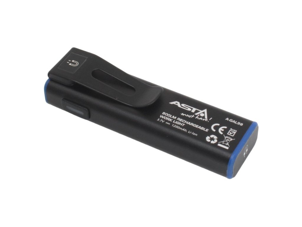 Magnetická inšpekčná baterka, COB LED 800 lm, nabíjateľná, 1200 mAh batéria, s magnetom a klipom - ASTA A-GAL98