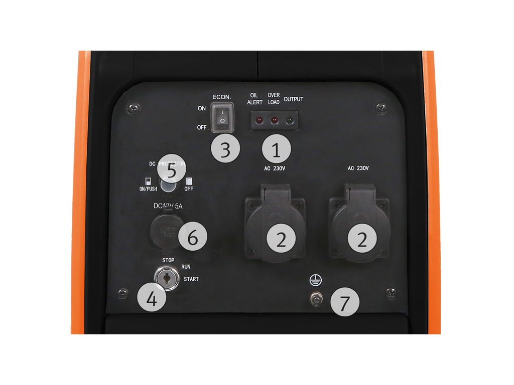 El. zásuvky: 2 × 230 V Schuko / 1 × 12 V DC; 5 A